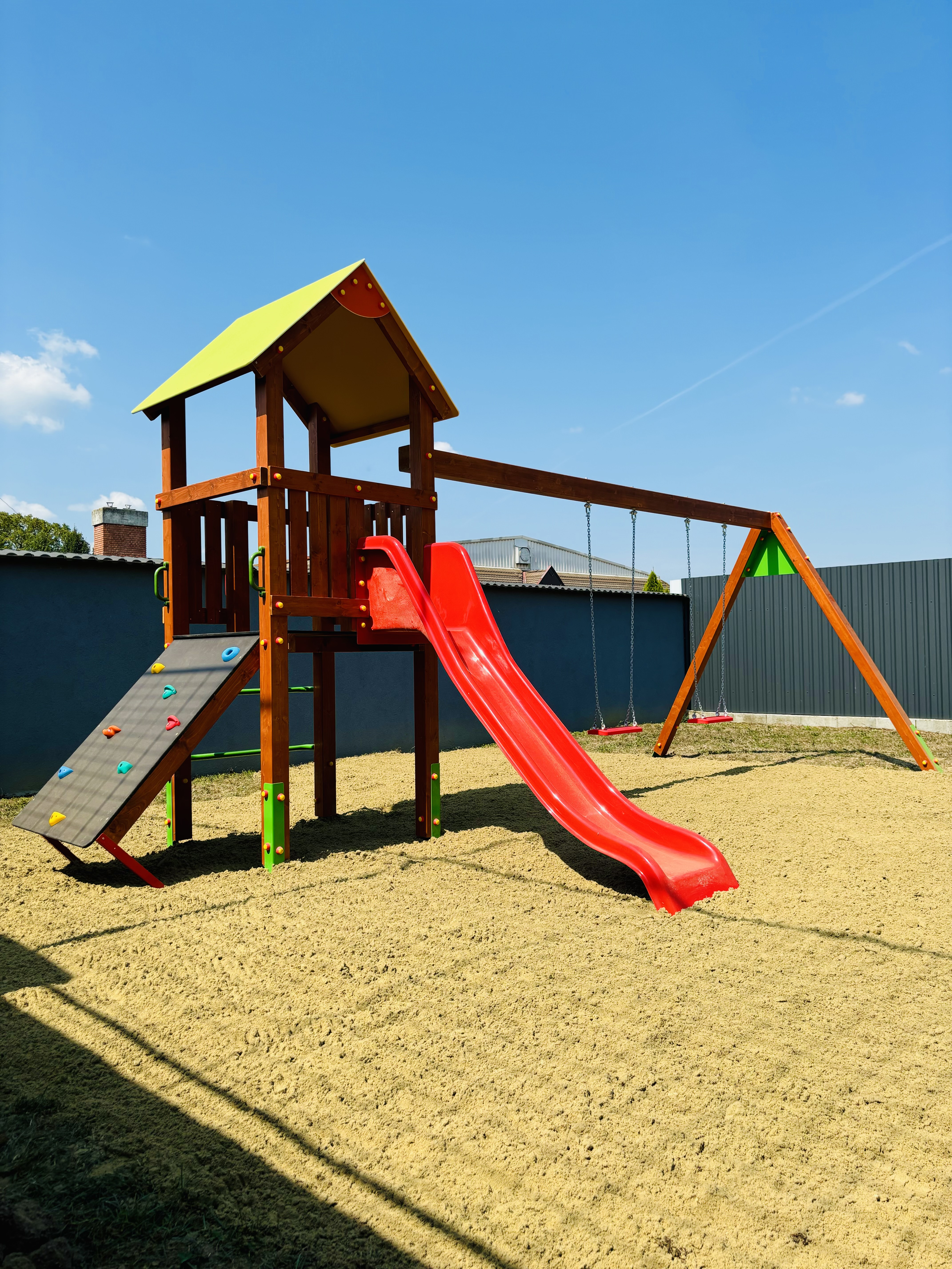 A 2006 évtől forgalmazott hazai fejlesztésű és gyártású, rugalmasan, a helyi igényekhez alakítható játszótéri eszközcsalád tagjai szerkezetükben pácolt fenyőből, színterezett fém tartólábakkal készülnek. Nagy tartósságú, színes HDPE műanyag és festett, vízálló lemez lapokkal, kiváló minőségű műanyag kiegészítőkkel, alapáron műanyag csúszdákkal szerelt, törekvésünk szerint szép, színes, hazai igényekre optimalizált, nagy játszóértékű, tartós játékok. Az eszközök megfelelnek a vonatkozó, új MSZ EN 1176/1:2008 szabványnak, és rendelkeznek Tanúsítvánnyal. - A játszótéri eszközeinknél a feltüntetett árak bruttó árak, tartalmazzák az áfát. - További felmerülő költségek: - - szállítási költség, mely függ a megrendelt eszközök számától, fajtájától, a szállítási távolságtól - telepítési költség, az eszközszámtól függően 12-18% - ütéscsillapító gumiburkolat, gumitégla, vagy folyami homok a terület nagyságától függően - használatbavételi TÜV ellenőrzés