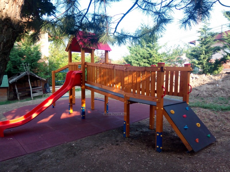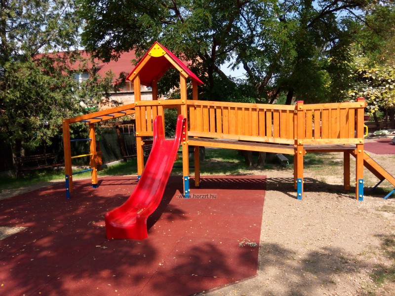 A 2006 évtől forgalmazott hazai fejlesztésű és gyártású, rugalmasan, a helyi igényekhez alakítható játszótéri eszközcsalád tagjai szerkezetükben pácolt fenyőből, színterezett fém tartólábakkal készülnek. Nagy tartósságú, színes HDPE műanyag és festett, vízálló lemez lapokkal, kiváló minőségű műanyag kiegészítőkkel, alapáron műanyag csúszdákkal szerelt, törekvésünk szerint szép, színes, hazai igényekre optimalizált, nagy játszóértékű, tartós játékok. Az eszközök megfelelnek a vonatkozó, új MSZ EN 1176/1:2008 szabványnak, és rendelkeznek Tanúsítvánnyal. - A játszótéri eszközeinknél a feltüntetett árak bruttó árak, tartalmazzák az áfát. - További felmerülő költségek: - - szállítási költség, mely függ a megrendelt eszközök számától, fajtájától, a szállítási távolságtól - telepítési költség, az eszközszámtól függően 12-18% - ütéscsillapító gumiburkolat, gumitégla, vagy folyami homok a terület nagyságától függően - használatbavételi TÜV ellenőrzés