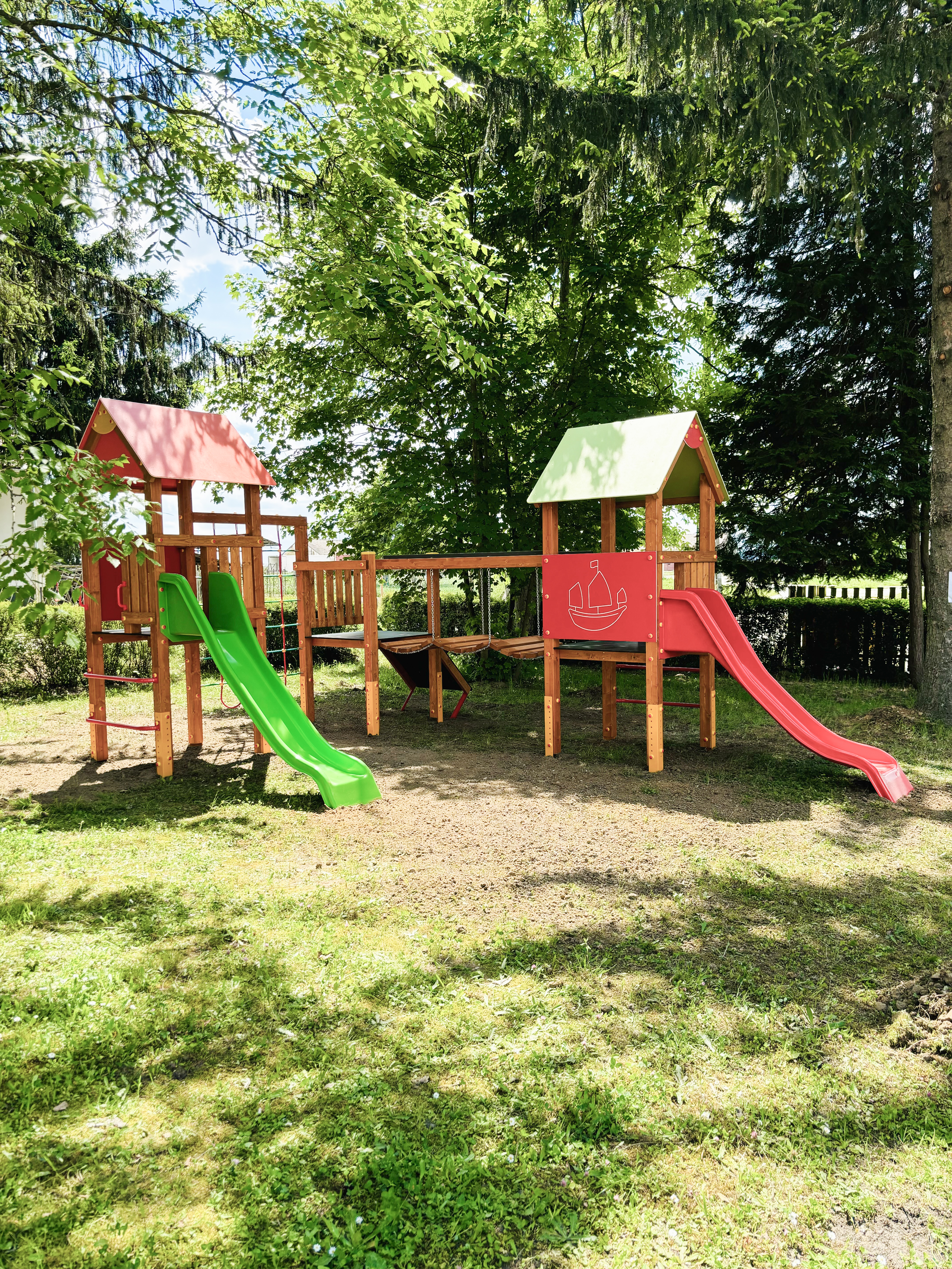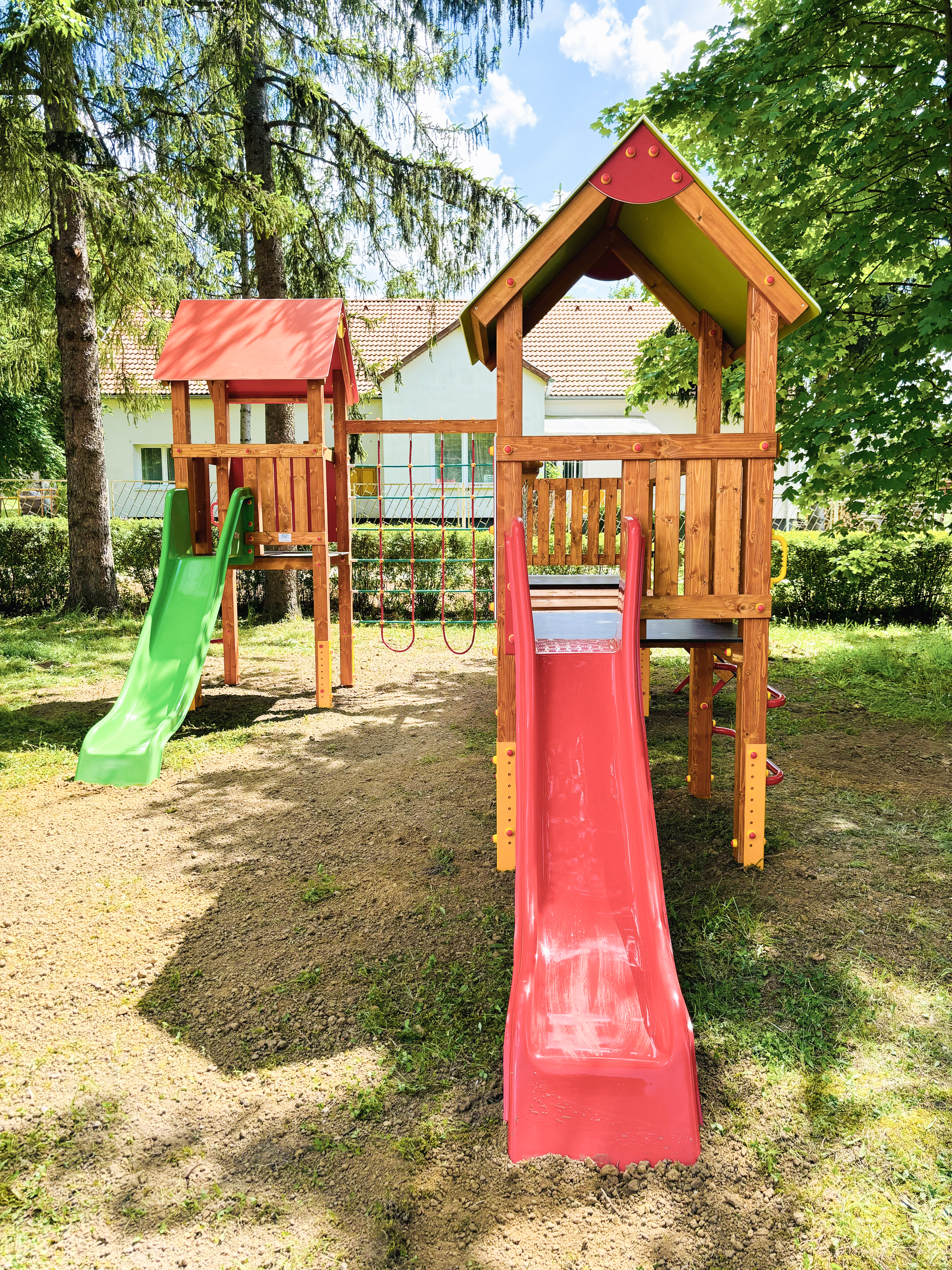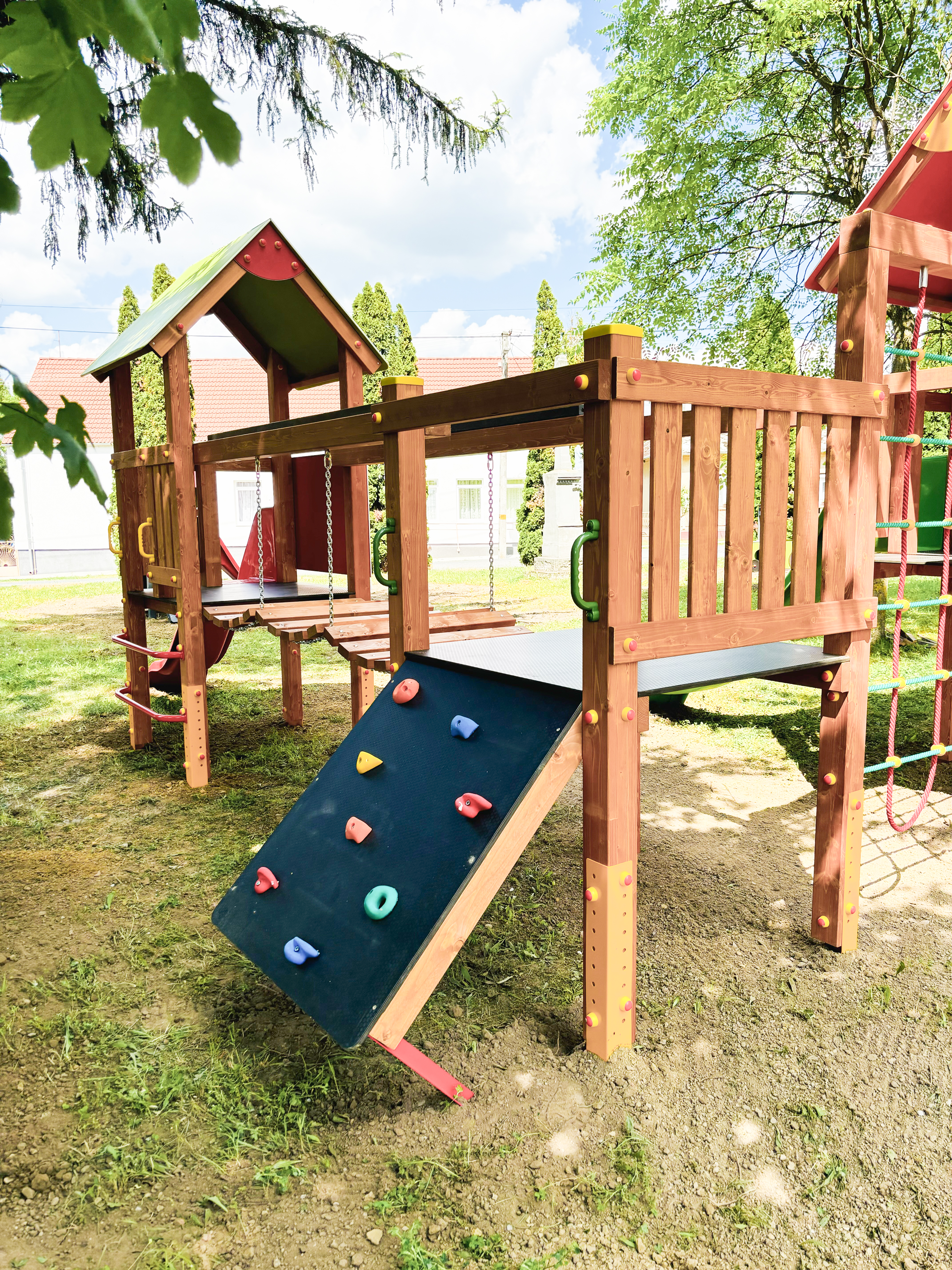 A 2006 évtől forgalmazott hazai fejlesztésű és gyártású, rugalmasan, a helyi igényekhez alakítható játszótéri eszközcsalád tagjai szerkezetükben pácolt fenyőből, színterezett fém tartólábakkal készülnek. Nagy tartósságú, színes HDPE műanyag és festett, vízálló lemez lapokkal, kiváló minőségű műanyag kiegészítőkkel, alapáron műanyag csúszdákkal szerelt, törekvésünk szerint szép, színes, hazai igényekre optimalizált, nagy játszóértékű, tartós játékok. Az eszközök megfelelnek a vonatkozó, új MSZ EN 1176/1:2008 szabványnak, és rendelkeznek Tanúsítvánnyal. - A játszótéri eszközeinknél a feltüntetett árak bruttó árak, tartalmazzák az áfát. - További felmerülő költségek: - - szállítási költség, mely függ a megrendelt eszközök számától, fajtájától, a szállítási távolságtól - telepítési költség, az eszközszámtól függően 12-18% - ütéscsillapító gumiburkolat, gumitégla, vagy folyami homok a terület nagyságától függően - használatbavételi TÜV ellenőrzés