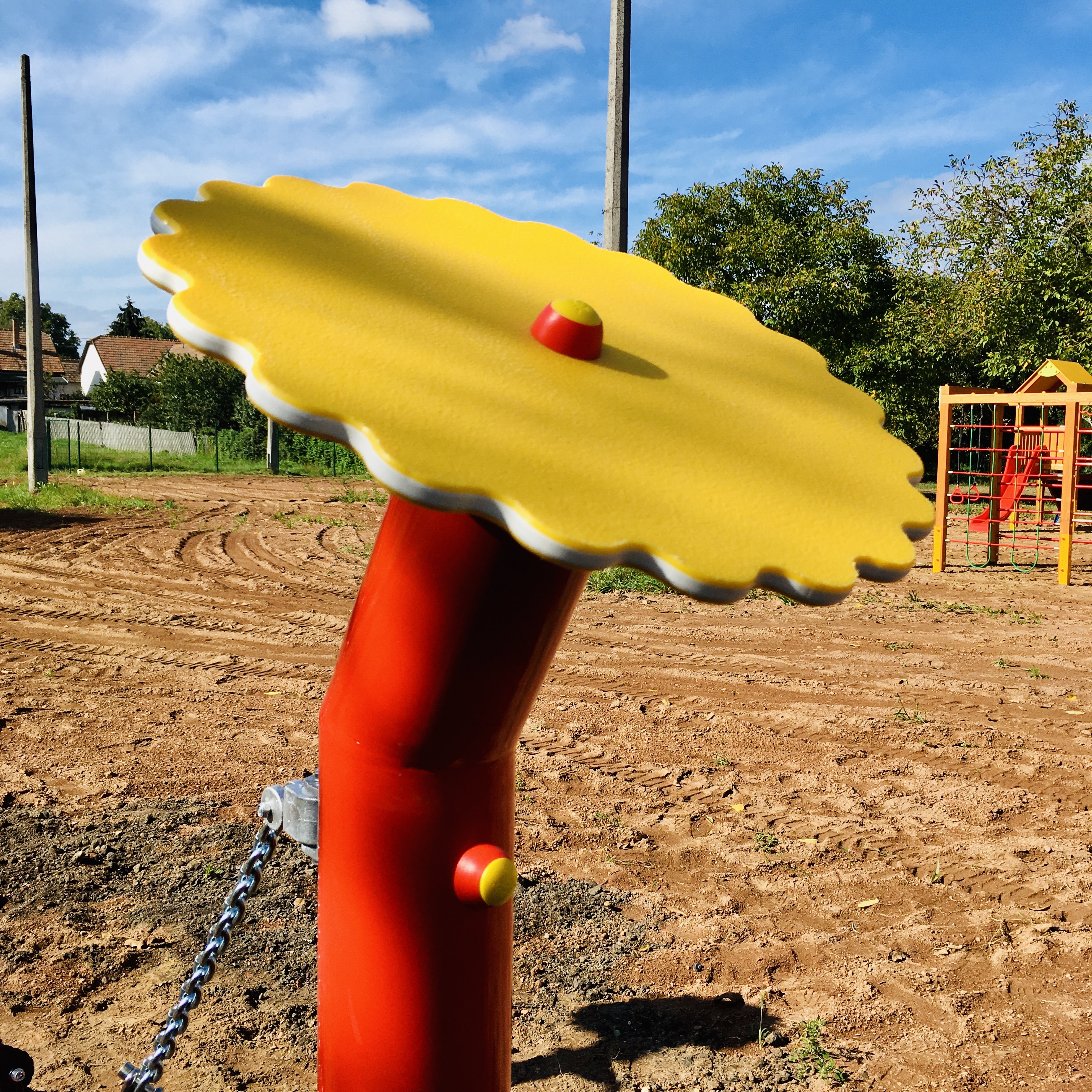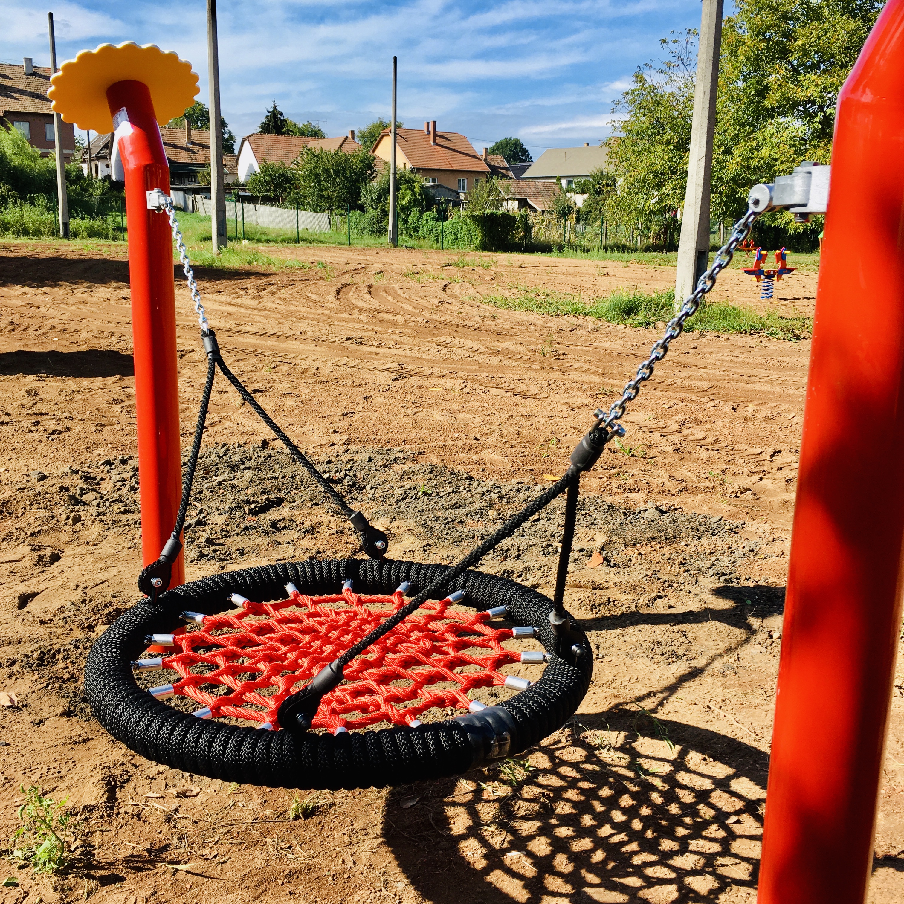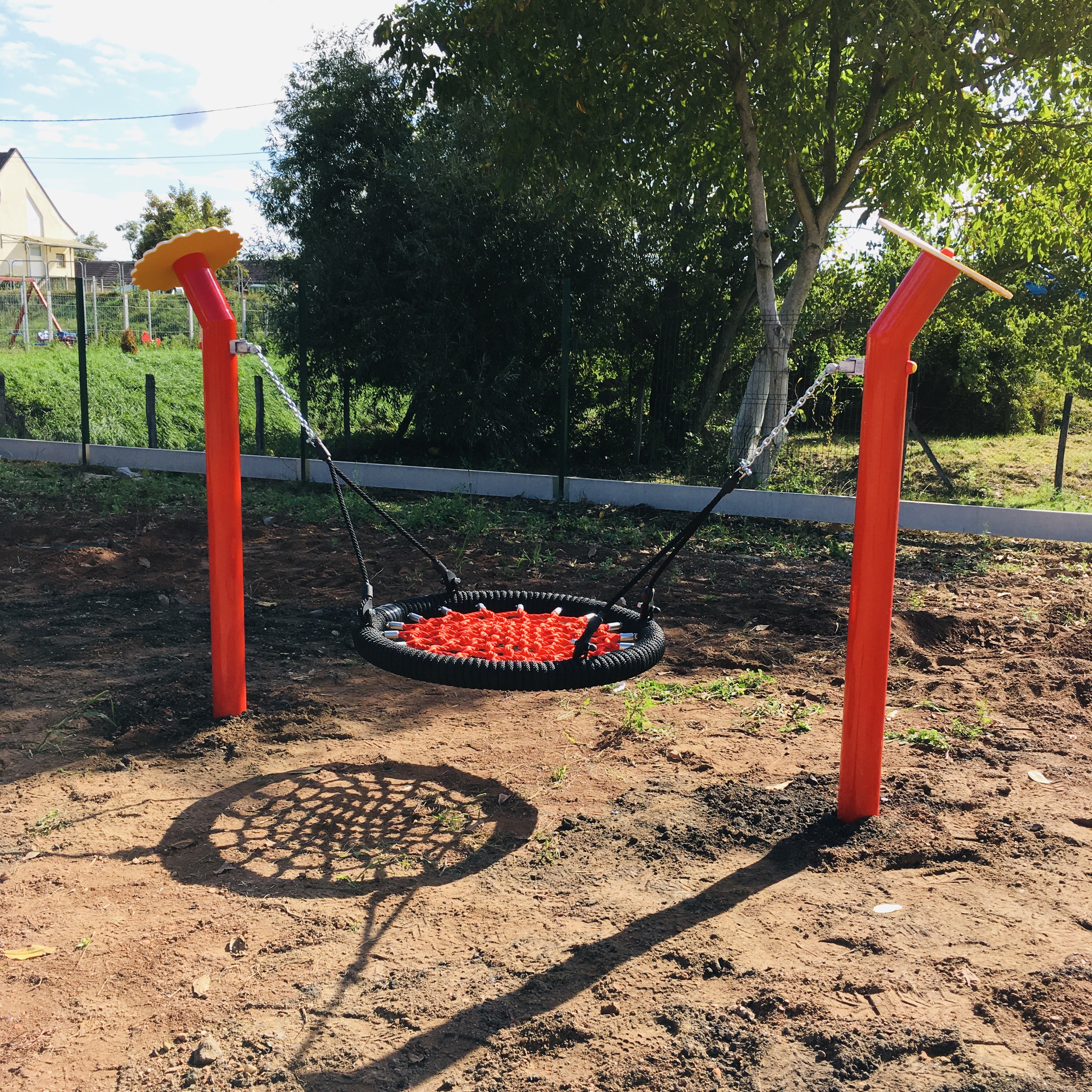 A masszív fém tartóoszlopok erős, időjárásálló szerkezetet biztosítanak, így hosszú távon is ideális választás közösségi játszóterekre, óvodákba vagy kertekbe.