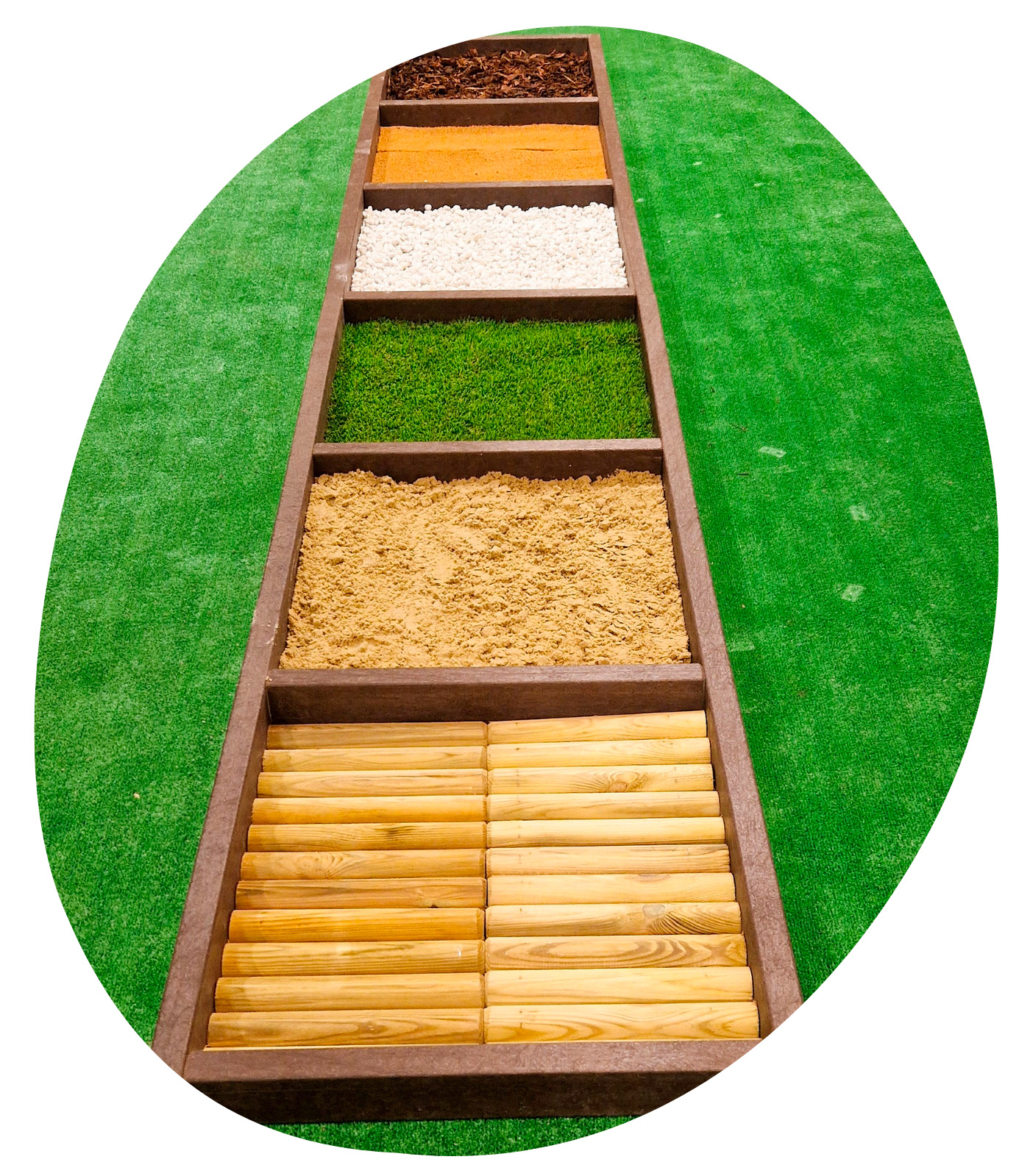 A Taposóösvény egy innovatív fejlesztő eszköz, amely természetes és változatos felületeken való járást biztosít, segítve a gyermekek mozgáskoordinációjának, egyensúlyérzéküknek és érzékelésüknek a fejlődését.
