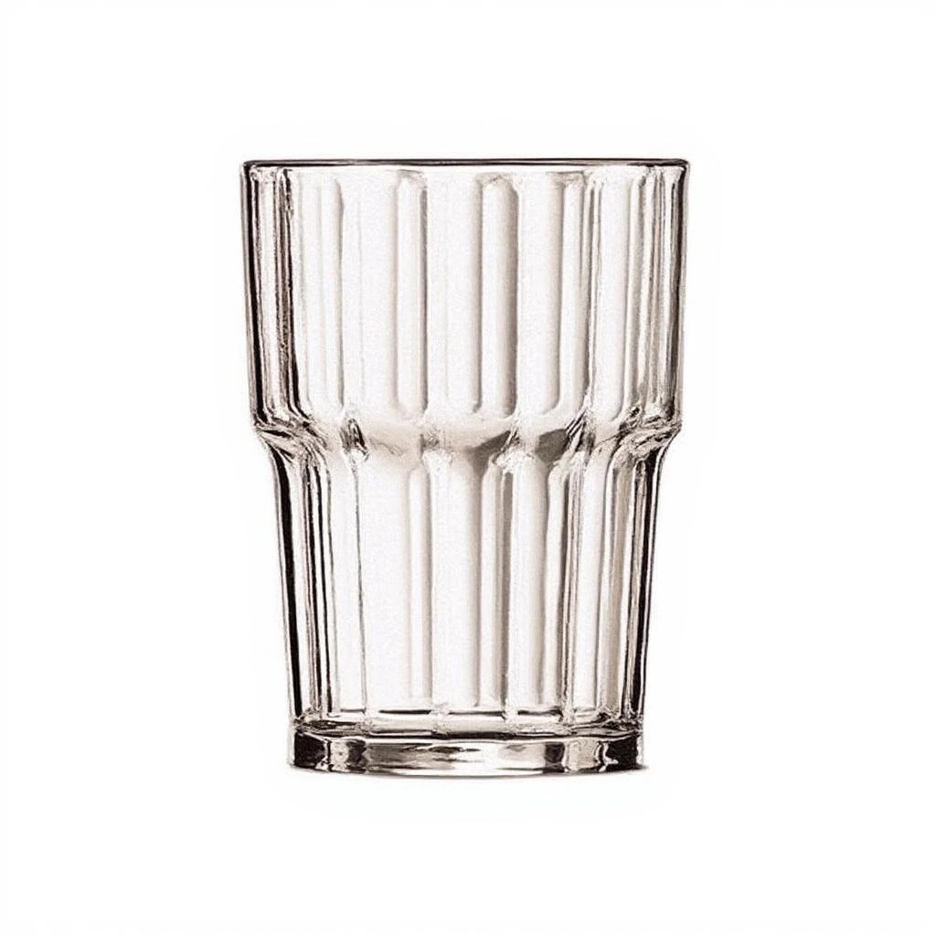 200 ml-es temperált vizes pohár Egymásba rakható, sorolható. Kívül bordás, belül sima felületű. Rendkívül ellenálló hőmérsékletnek és fizikai behatásoknak. Extra ütésálló, szilánkmentesen törik. Mosogatógépben mosható.