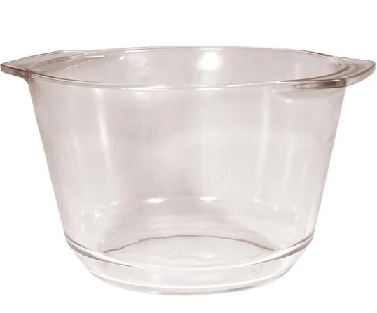 Üveg levesestál füllel, 4L, 15x23 cm. Mosogatógépben mosható. Nem temperált, mérsékelten hőálló.