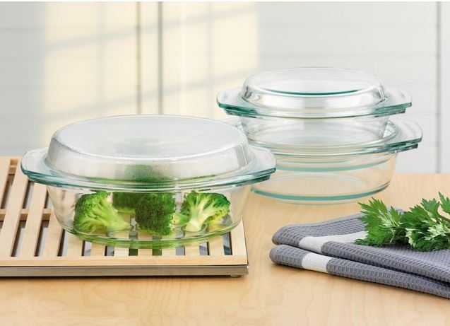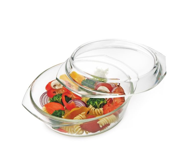 Hőálló kerek üvegtál fedővel szettben. Mérete: 18,2x8,1 cm Űrtartalma: 1 liter Hőálló (nem temperált) Anyagának köszönhetően bármilyen típusú sütőben, mikrohullámú sütőben, hűtőben és mosogatógépben is használható. Kimondottan strapabíró.
