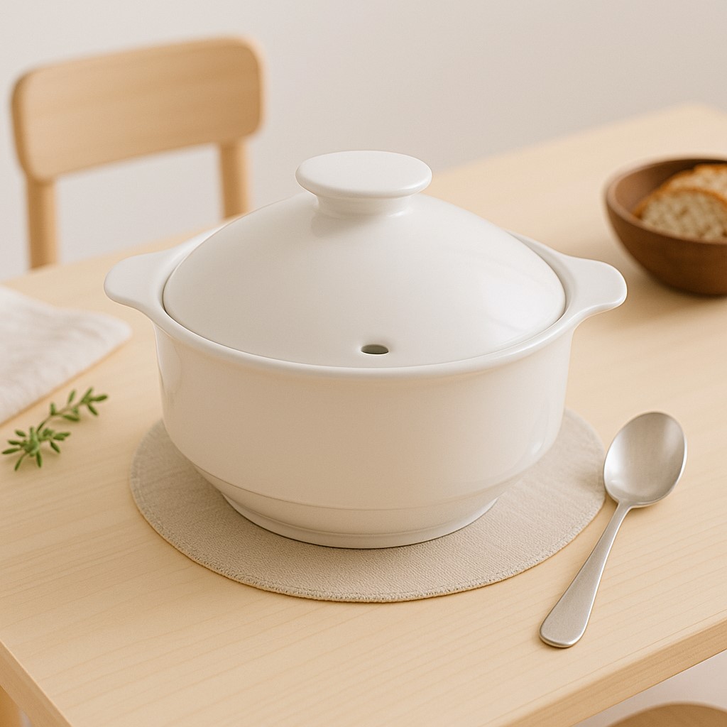 Porcelán levesestál fedővel, 3L, megerősített széllel. Mikrohullámú sütőben használható. Mosogatógépben mosható.