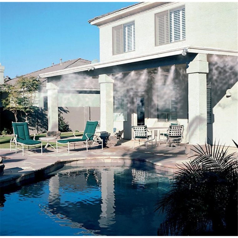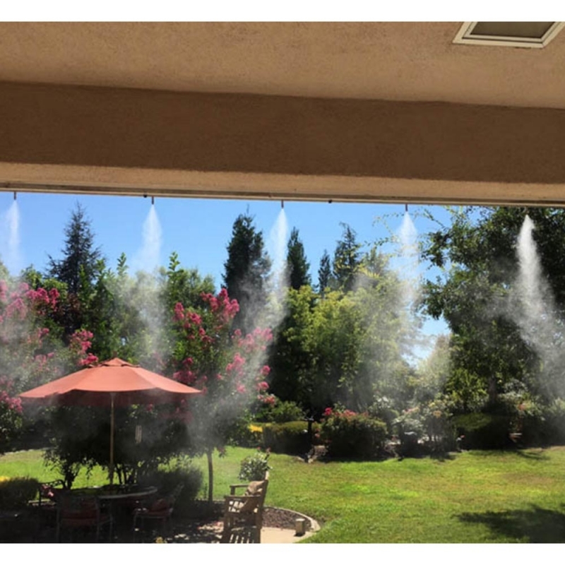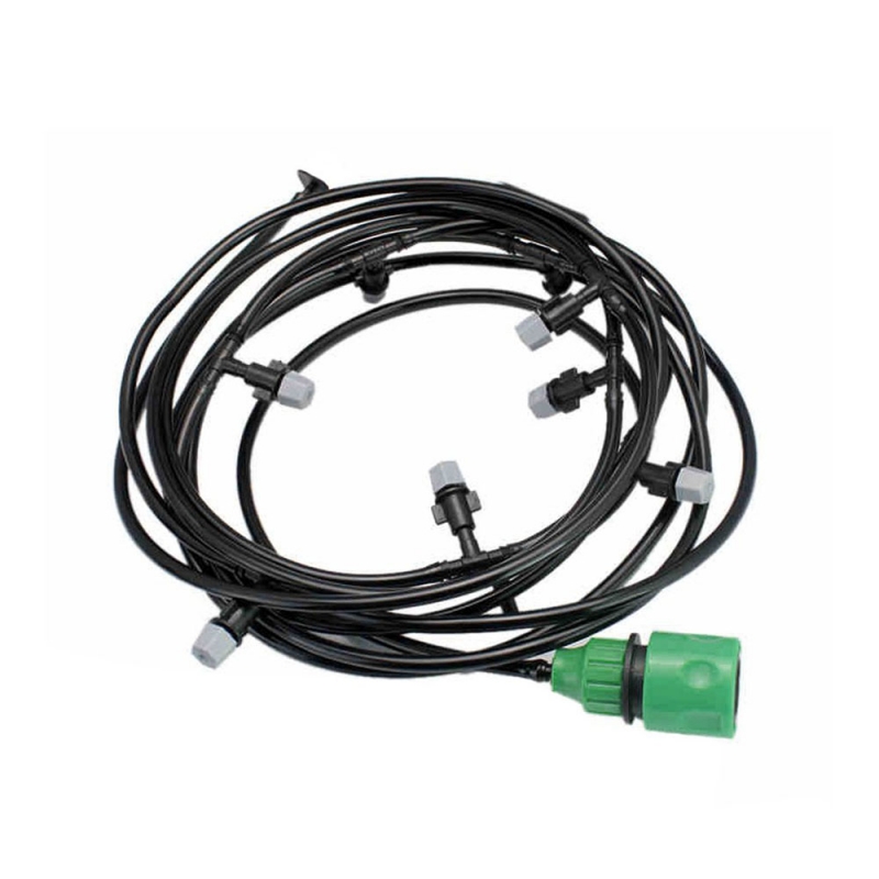 Praktikus, könnyen felszerelhető vízpermetező rendszer, amely frissítő párát biztosít a forró nyári napokon.