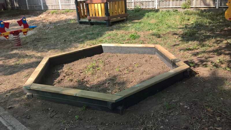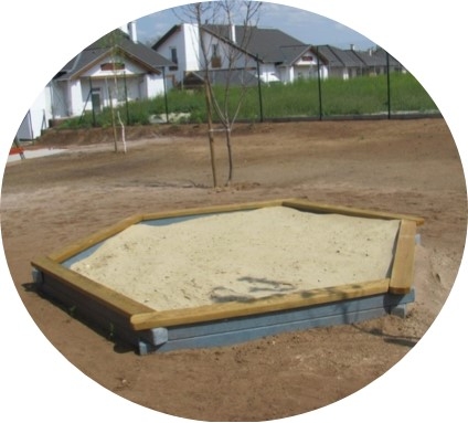 Intézményi használatra tervezett homokozókeret.