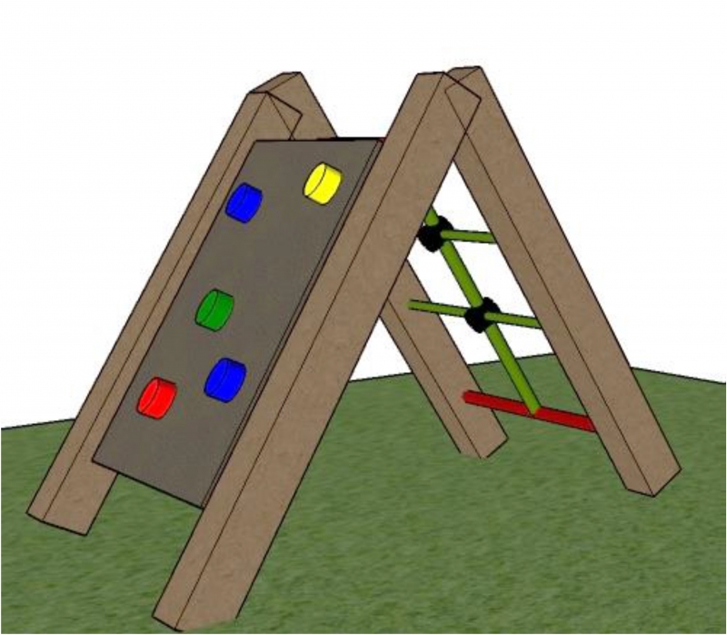 Mérete: Szélesség: 86 cm, Terpesztése: 196 cm. Alapterület: 2,1x1,3 m. Helyigény: 5,1x5,1 m. Esési magasság: 98 cm. Füves, homokos területre telepíthető. TÜV tanúsított termék.A szerkezet, anyaga fenyő. Az oszlopok anyaga, fenyő, vagy vele azonos teherbírású, UV álló, tömör, újrahasznosított műanyag. A kötőelemek horganyzottak. A csavartakarók, mászóelemek műanyagból készültek. Kapaszkodók akácfából, illetve horganyzott csőből készülnek Az eszközök megfelelnek a vonatkozó, MSZ EN 1176/1:2008 szabványnak. Az ár a telepítés és az első használatbavételi engedélyeztetés díját nem tartalmazza! A termék csak telepítéssel együtt rendelhető