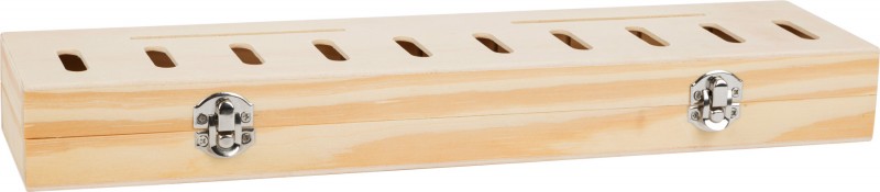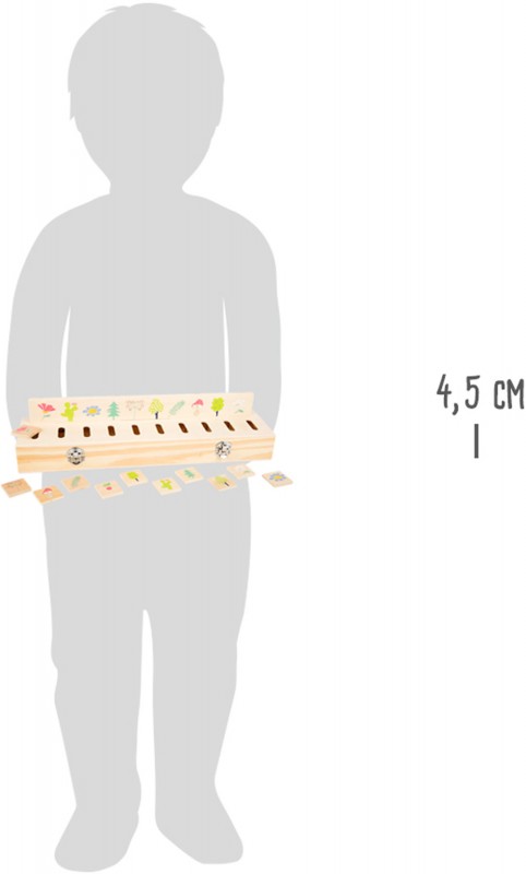 Kártya mérete: 3x3cm Doboz mérete: kb. 40x10x4,5 cm Tartalma: - 1 db fa kiválasztó doboz - 20 db fa kétoldalú kártya - 2 db fa feladattábla