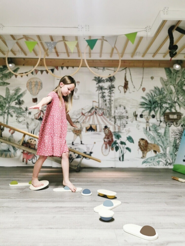 A fejlesztő játékeszköz segít az egyensúlyérzék és a koordináció fejlesztésben, továbbá a láb- és talpizomzat megerősödését is elősegíti.