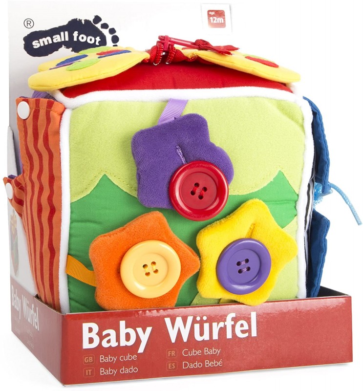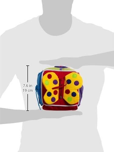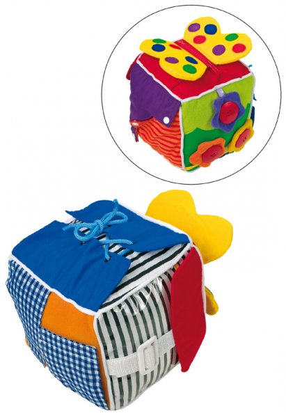 A kocka megtanítja a kicsiket hogyan lehet cipőt kötni, hogyan használja a csatot, cipzárt, gombot, a patentot.