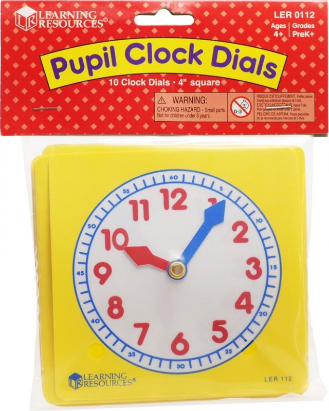 A Learning Resources tanuló órakészlete 10 darab citromsárga műanyag óralapot tartalmaz. Az órák piros színű kis- és kék színű nagymutatója külön-külön mozgatható. Az óralapok lekerekített szélei és anyaga miatt nem sérülésveszélyesek. Az órákat jelölő számok nagyméretű, piros színű számok. A kismutató pontosan rájuk mutat, így egyszerűen leolvasható a beállított idő. Az óra külső körívén látható a percek beosztása, ez kék színnel van jelölve, akárcsak a percmutató. Akár a tanórákon is használható segédeszköz. Könnyen tisztán tartható, nedves szivaccsal lemosható. Egy óra mérete: 11,5x11,5 cm
