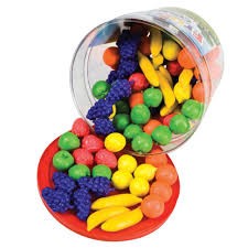 A csomag különböző méretű és fajtájú műanyag gyümölcsöt tartalmaz, amelyek segítségével megtanulhatjuk a szortírozást illetve kiegészítője lehet egyéb szerepjátékoknak is.