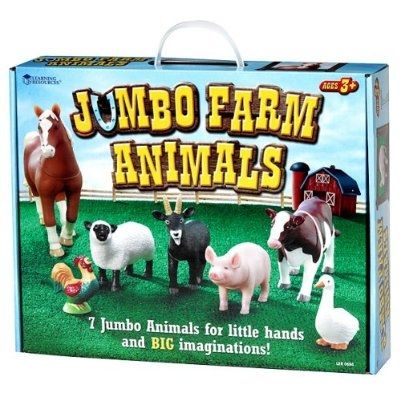 A Learning Resources Jumbo termékcsaládjának - Farm állatait tartalmazó készletében megtalálható mind a hét ismert állat a farmok világából. A ló, a kecske, a tehén, a malac, a liba, a bárány és a kakas is helyet kapott a készletben. A figurák káros anyagoktól mentes, strapabíró műanyagból készülnek. Az állatok mind úgy lettek kialakítva, hogy a való életben is megtalálható társaik jellegzetes vonásai felismerhetőek legyenek. Részletekben gazdag, pontosan megmunkált, magasminőségű termék. A csomagolás mérete: 35x28x11 cm A figurák méretei: - Ló: 18x24 cm - Kecske: 11x15 cm - Tehén: 11x20 cm - Malac: 7x13 cm - Liba: 8x8 cm - Bárány: 9x13 cm - Kakas: 7x6 cm 18 hónapos kortól CE minősítéssel ellátva!