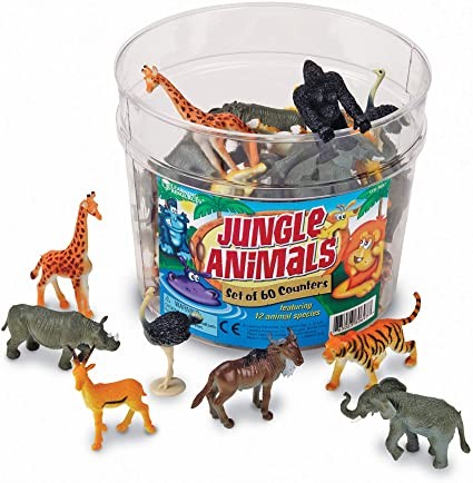 A Learning Resources vadállatok készlete 60 db, 5x12 különböző műanyag figurát tartalmaz.