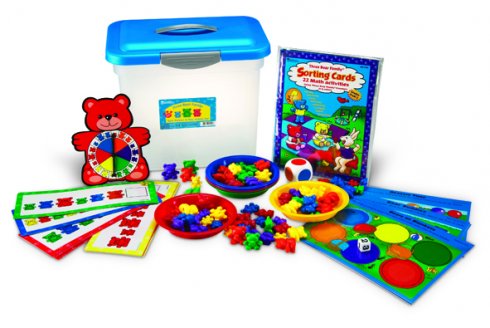 A Learning Resources műanyag macicsalád szortírozó szettjében 96 darab kismedve található. A maci figurák 2-4 cm nagyságúak és károsanyagmentes tömör műanyagból készültek. A figurák hat különböző színben vannak jelen a készletben, ezek a lila, a kék, a piros, a citrom- és narancssárga, illetve a zöld szín lehetnek. A bábuk kialakításának köszönhetően a való életben is fellelhető állat jellegzetes vonásait hűen tükrözi. Felületük textúrált, szőrre emlékeztető. A macik súlya változó. A papa maci 12 g, a mama maci 8 g, a bocs pedig 4 g. A készlet további elemei: - 6 db színes szortírozó tál (macik színével megegyezőek) - 5 cm-es színdobókocka - 1 db számdobókocka - 16 db mintakártya - 12 db feladatkártya - 1 db macis játéktárcsa - 1 db tárolódoboz. A csomagolás mérete: 34x23x31 cm