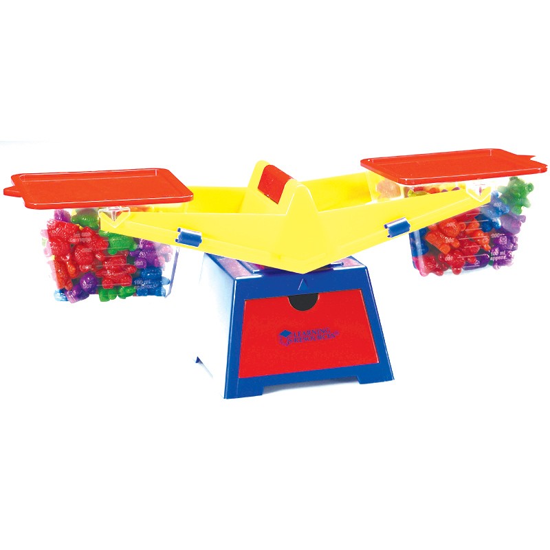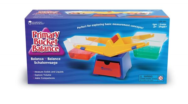 A Learning Resources karos mérlege a folyékony és a szilárd halmazállapotú anyagok mérésére egyaránt alkalmas. Két áttetsző serpenyőjében/mérőedényében jól láthatóak a beletett mennyiségek. A lemérni kívánt anyag űrtartalmának könnyed megállapítására a serpenyők oldalán található beosztások szolgálnak, maximum 400 ml anyag kerülhet bele. Élénk citromsárga karjai és kék színű talpa van, kis piros fiókkal. A serpenyőket le is lehet zárni, melyekhez piros műanyag tetőt használhatunk. A mérőedények csőrös kialakításának köszönhetően könnyen lehet a folyadékokat kiönteni belőle. A termék minden eleme strapabíró, károsanyagmentes műanyagból készült Termék mérete: 42x16,5x15 cm