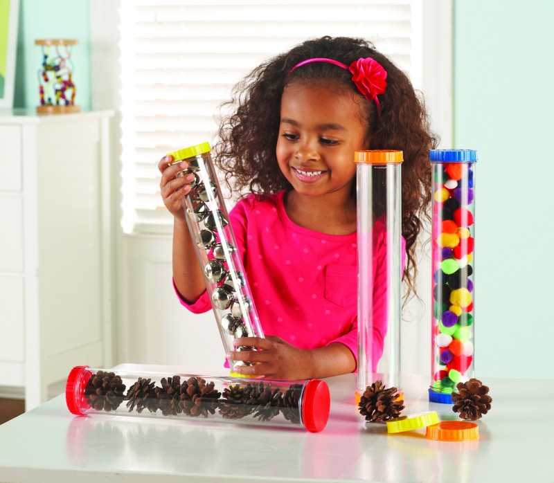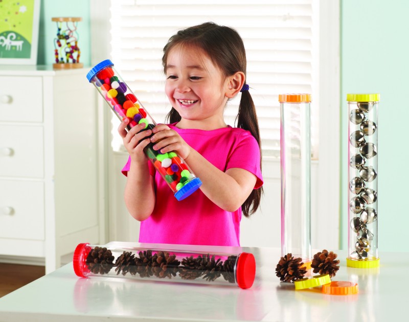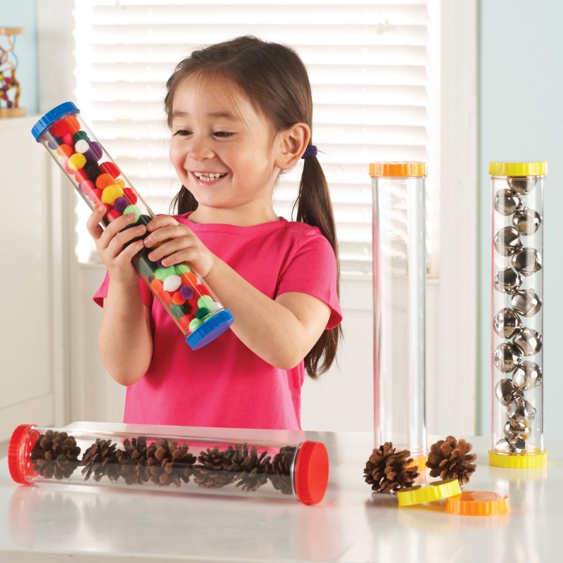 A Learning Resources szenzoros csövek készlete 4 db áttetsző műanyag csövet tartalmaz, 8 db zárt színes fedővel és 4 db lyukacsos színes fedővel. A fedők színe lehetnek piros, citromsárga narancssárga vagy kék. A fedők csavarosan rögzíthetőek a csövekhez, oldaluk bordázott. A cső átmérője 5 cm, magassága 30 cm. Méretükből adódóan számos termés, kisebb tárgy vagy természetes anyag belefér. A csövek és a tetők is erős műanyag anyagból készültek, magas minőségű termékek. 2 éves kortól CE minősítéssel ellátva!