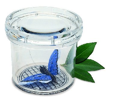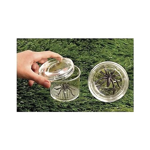 A Learning Resources nagyítópoharának átmérője 7,5 cm, teljes egészében áttetsző műanyagból készült. A pohár teteje egy nagyító, mellyel jól tanulmányozható bármi, amit beleteszünk. A tető szélén lyukak találhatóak, így élő rovar tanulmányozására is alkalmas. A pohár alján négyzetrácsos háló minta látható, mellyel a vizsgált tárgy vagy élőlény méretét tudjuk ellenőrizni. Mérete: 7x7x7 cm
