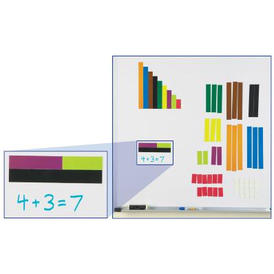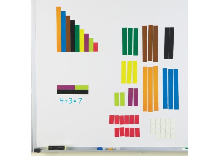 A Learning Resources mágneses számoló rudak készletben 64 db mágneses elem található. A szettben a rudak 10 különböző méretben találhatóak, színük eltérő. A legkisebb fehér színű négyzet, a legnagyobb narancssárga színű (10 db fehér négyzetnek megfelelő méretű - 25x2,5 cm) rúd. Rajtuk kívül a készletben található rózsaszín, világos- és sötétzöld, lila, citromsárga, fekete, barna, illetve kék színű rúd is. A rudak mágnességük miatt bármilyen fém felületen megtapadnak. Műanyag anyaguk, amely nem tartalmaz egészségre káros anyagokat, könnyen tisztítható. A csomagolás mérete: 28x15x1 cm