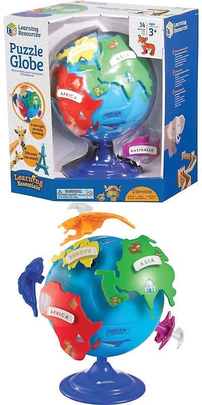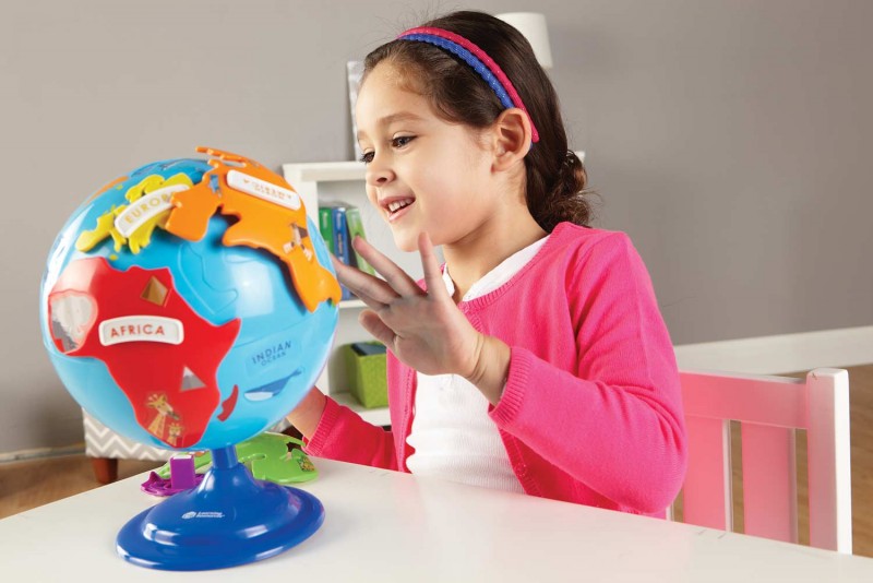 A Learning Resources földgömb puzzle játéka 1 db földgömböt, 6 db kontinens puzzle darabot, 6 db kontinens feliratot és üres címkéket tartalmaz. A kontinensek más-más színnel vannak megjelölve. Afrika - piros, Európa - citromsárga, Ázsia - zöld, Ausztrália - rózsaszín, Észak-Amerika narancssárga, Dél-Amerika - kék színű. A kontinens elemek olyan képekkel vannak ellátva, amik az adott területre jellegzetesek. Az óceánok nevei is fel vannak tűntetve a földgömbön. A kontinensek nevei fehér alapon, színessel vannak írva, a betűk színe megegyezik a kontinenselemek színeivel. A játék elemei műanyag anyagból készültek, melyek nem tartalmaznak az egészségre káros anyagokat. Anyagukból adódóan tisztításuk könnyed.