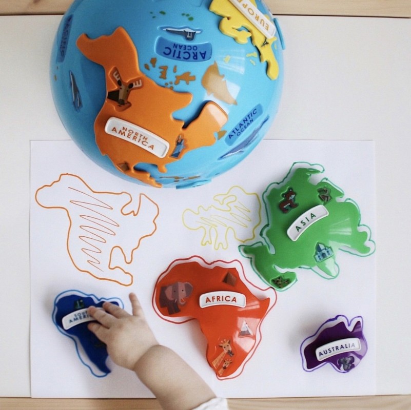Melyik kontinensen élnek a koalák? A Taj Mahal Ázsiában van? Melyik állat él Dél-Amerikában? Hol van az Atlanti-óceán? A földgömb segítségével most megtanulhatod a kontinensek, állatok, óceánok helyét, elhelyezkedését. A Nagyméretű puzzle elemek segítségével a kisgyermekek is könnyen használhatják.