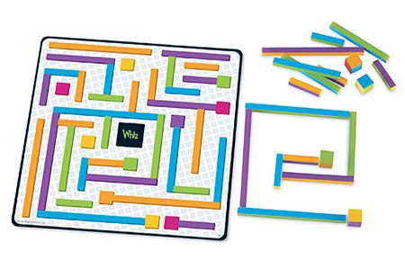 A Learning Resources gondolkodó labirintus játéka 44 db építőelemből és 25 db kétoldalas feladatkártyából áll. Az építőelemek szögletesek, méreteik eltérőek. Vannak köztük kockák és különböző hosszúságú rudak is. Minden oldaluk más-más színű, ami lehet kék, lila, narancs- és citromsárga, zöld vagy rózsaszín. A feladatlapok fehér-szürke kockás alapon ábrázolják a kirakandó ábrát. Minden kártya feketével van szegélyezve. A kártyák 3 különböző nehézségi szintűek: könnyű, közepes és nehéz ábrákat lehet kirakni velük. A játék műanyag elemei károsanyagmentes anyagból készültek. Anyagukból adódóan könnyen tisztántarthatóak. A csomagolás mérete: 21x21x5 cm