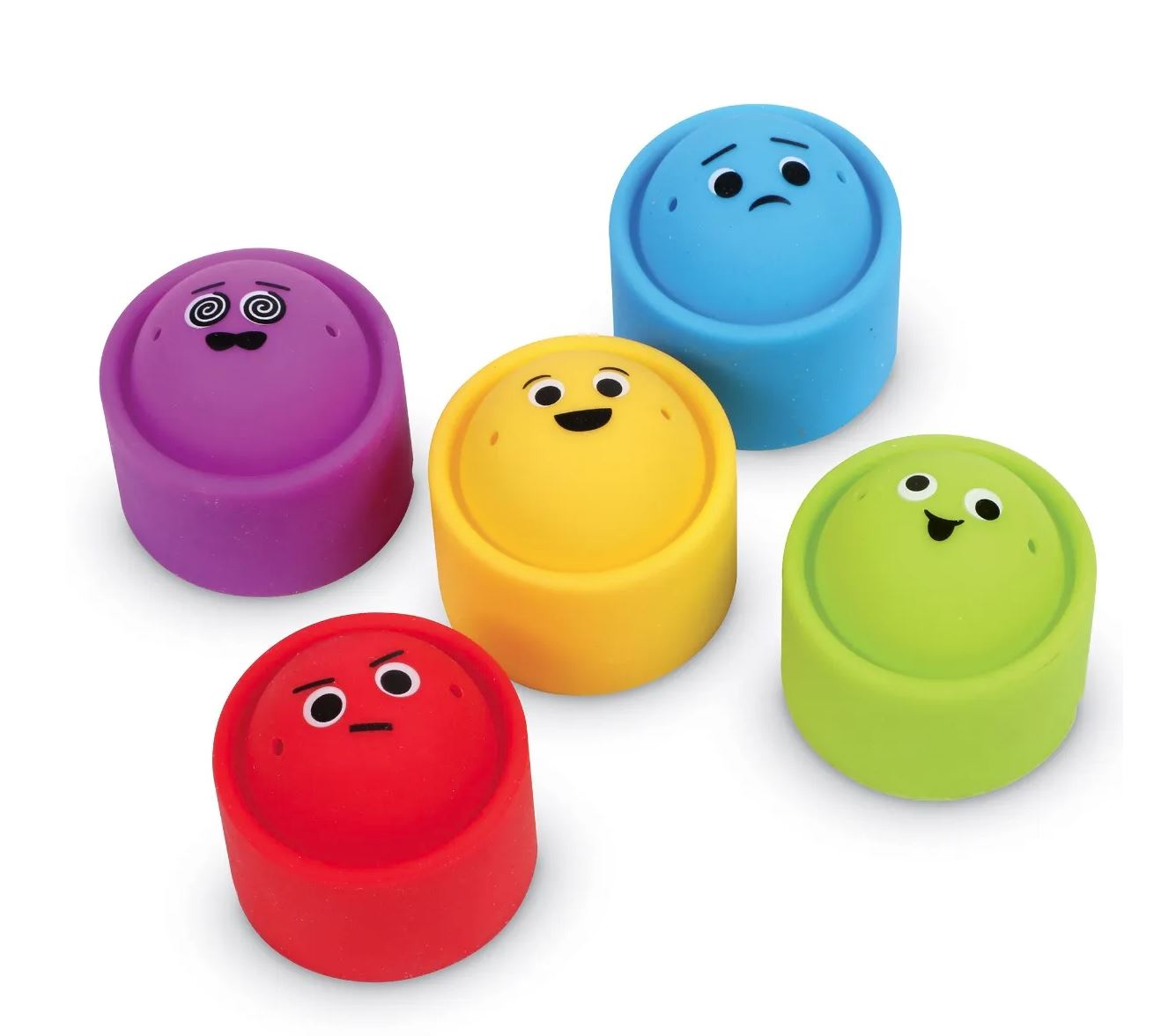 A puha szilikonból készült, kis kezekhez méretezett, színes popperek egy meglepetést is tartogatnak – mindegyiken különböző hangulatú arc látható, amit a gyerekeknek felismernek, megnyílnak és beszélnek az érzéseikről. A popperek egymásra is rakhatók, így finommotorikus játékként is használható.