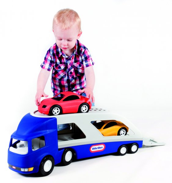 A tartós, erős műanyagból készült játék a gyermekek egyik kedvence. A kamion hátsó rámpája kinyitható, így bele lehet helyezni a két autót.