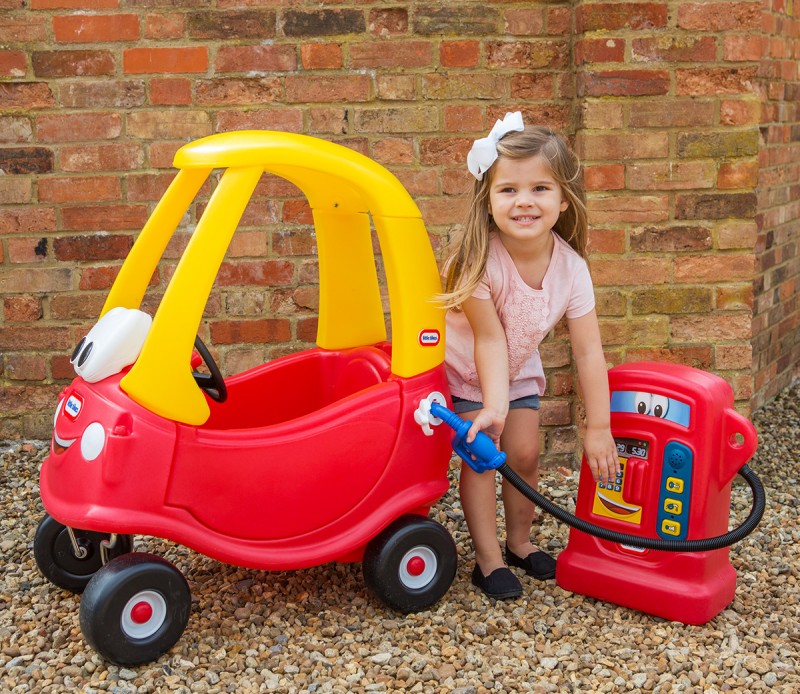 A lábbal is hajtható autó tetején egy fogantyú található, aminek segítségével a szülő irányíthatja a járgányt. A játék első kerekei 360 fokban forognak, így a gyermekek könnyen manőverezhetnek.