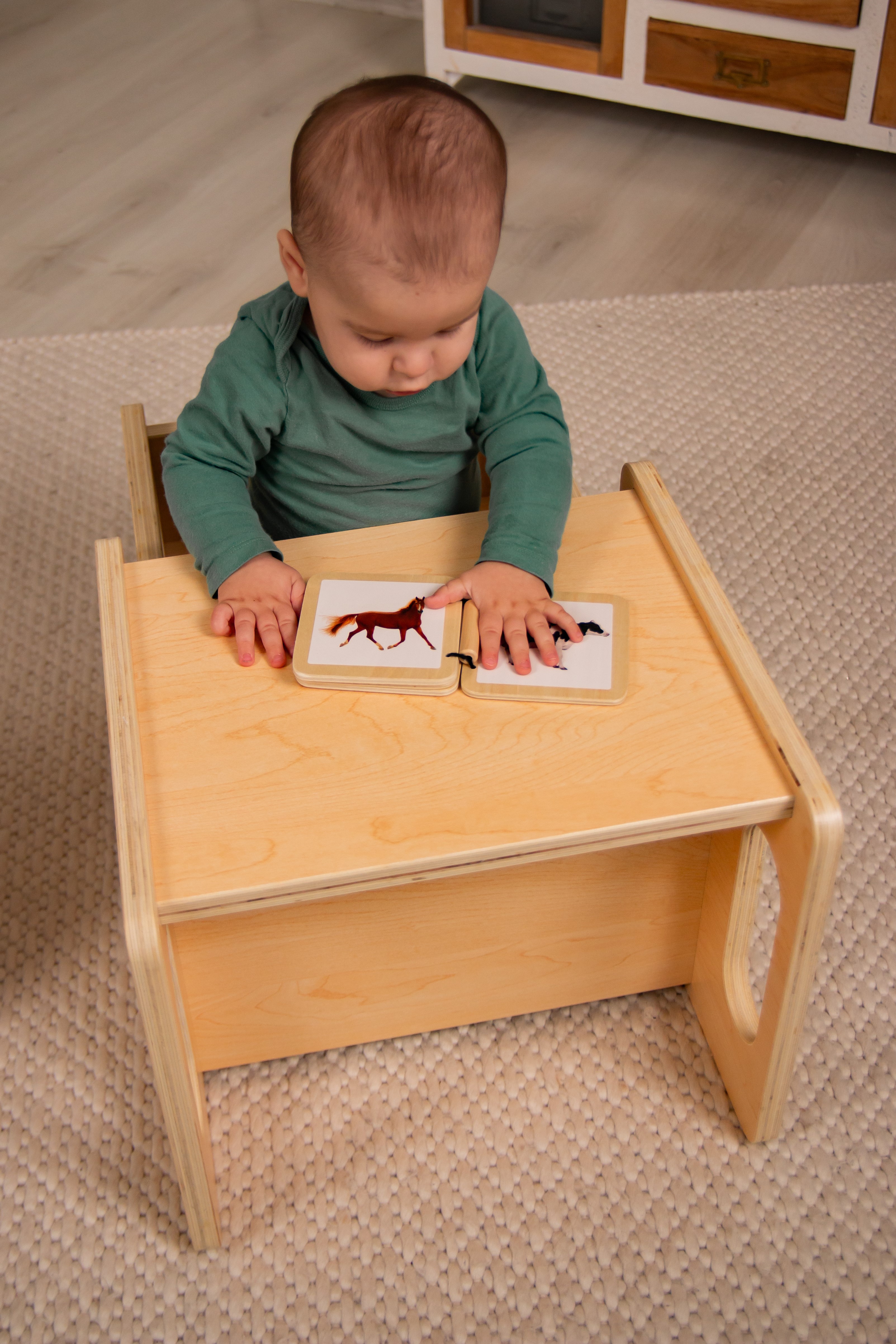 Praktikus, tartós és stílusos megoldás, amely kifejezetten gyerekeknek lett tervezve, ideális mind otthonra, mind intézményekbe. A szett anyaga tartós és környezetbarát fenyőfa, rétegelt kialakítása biztosítja a hosszú élettartamot. Könnyű súlyának köszönhetően egyszerűen mozgatható és ideális kreatív tevékenységekhez, mint a rajzolás, írás vagy játék.