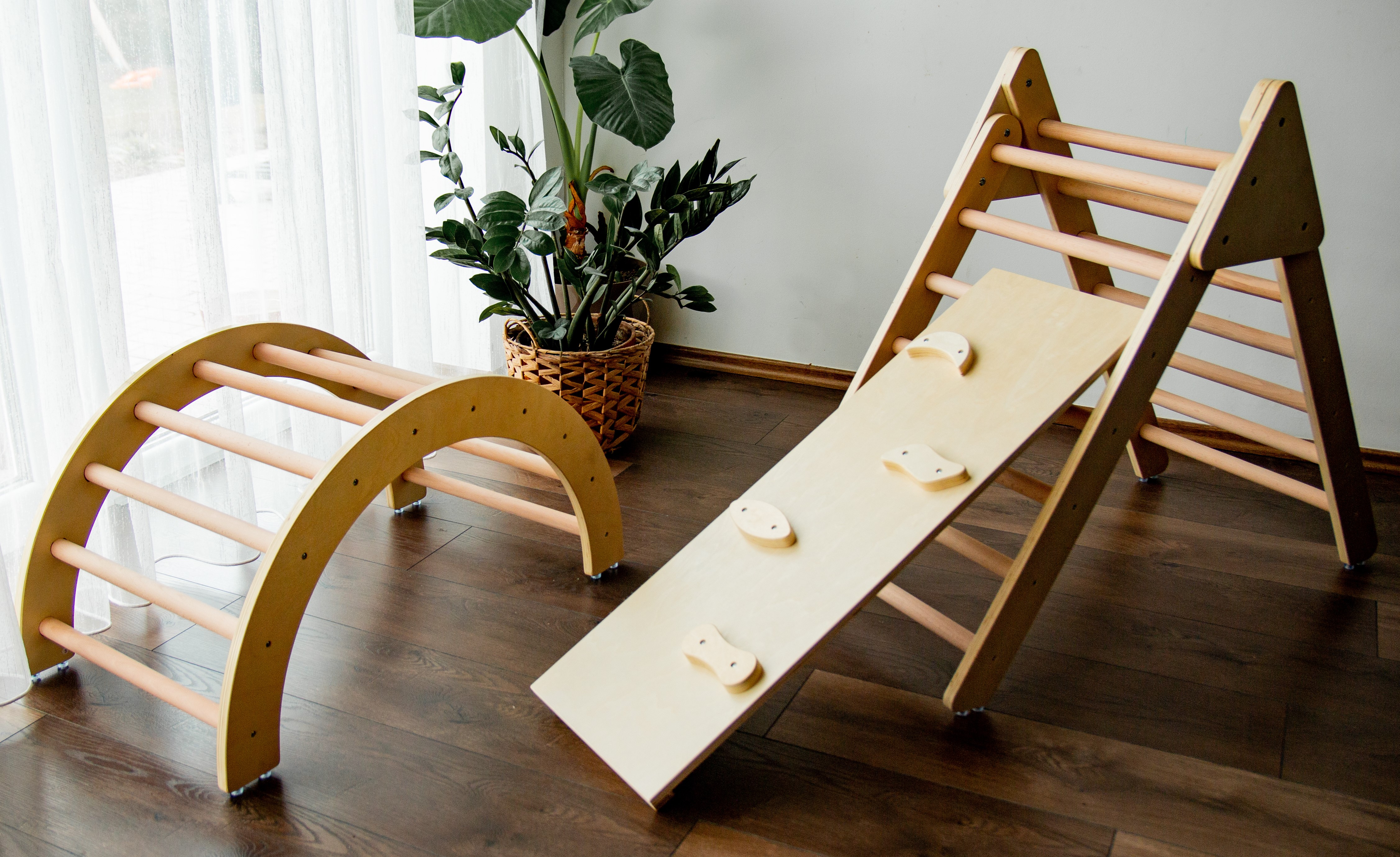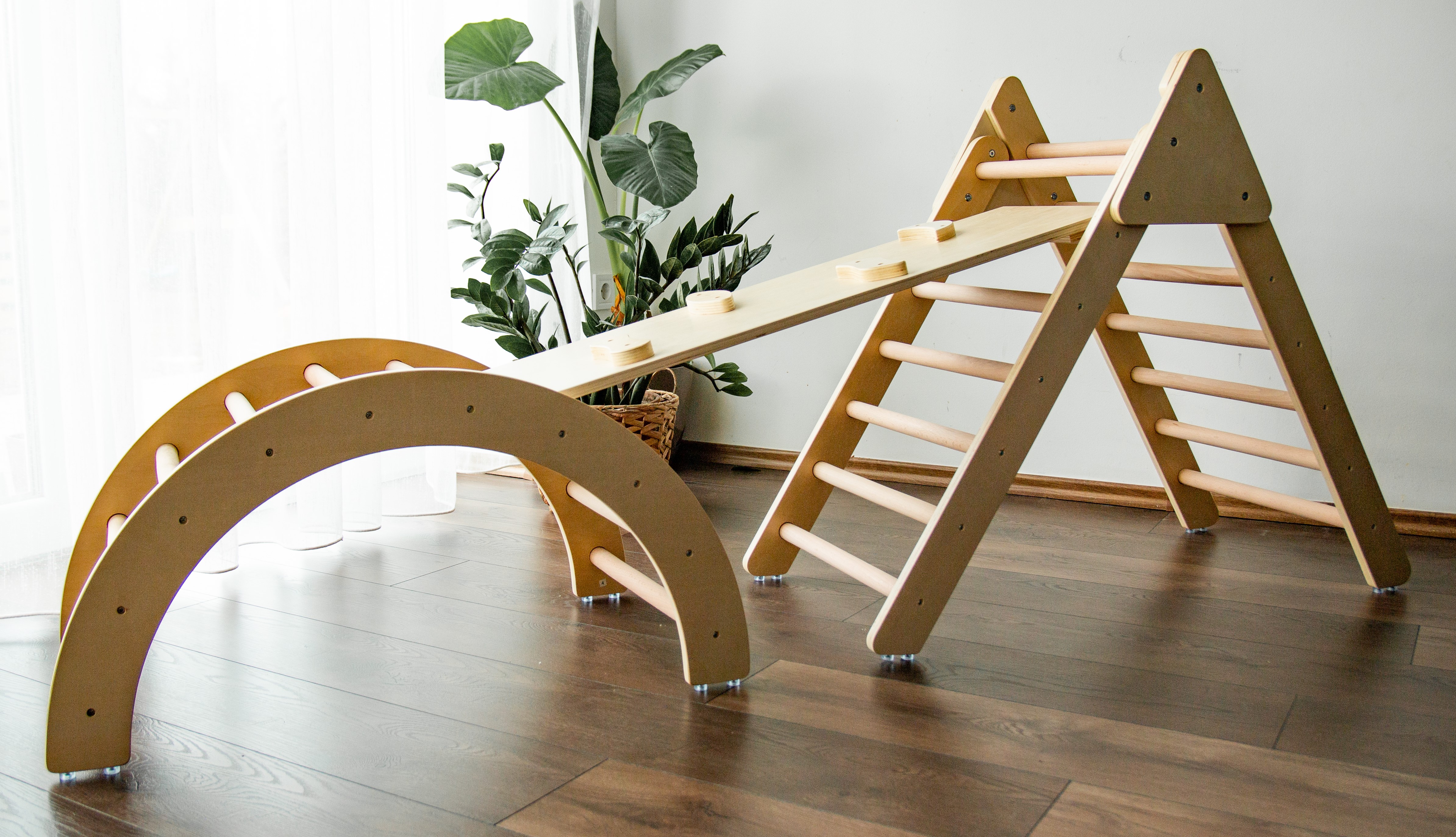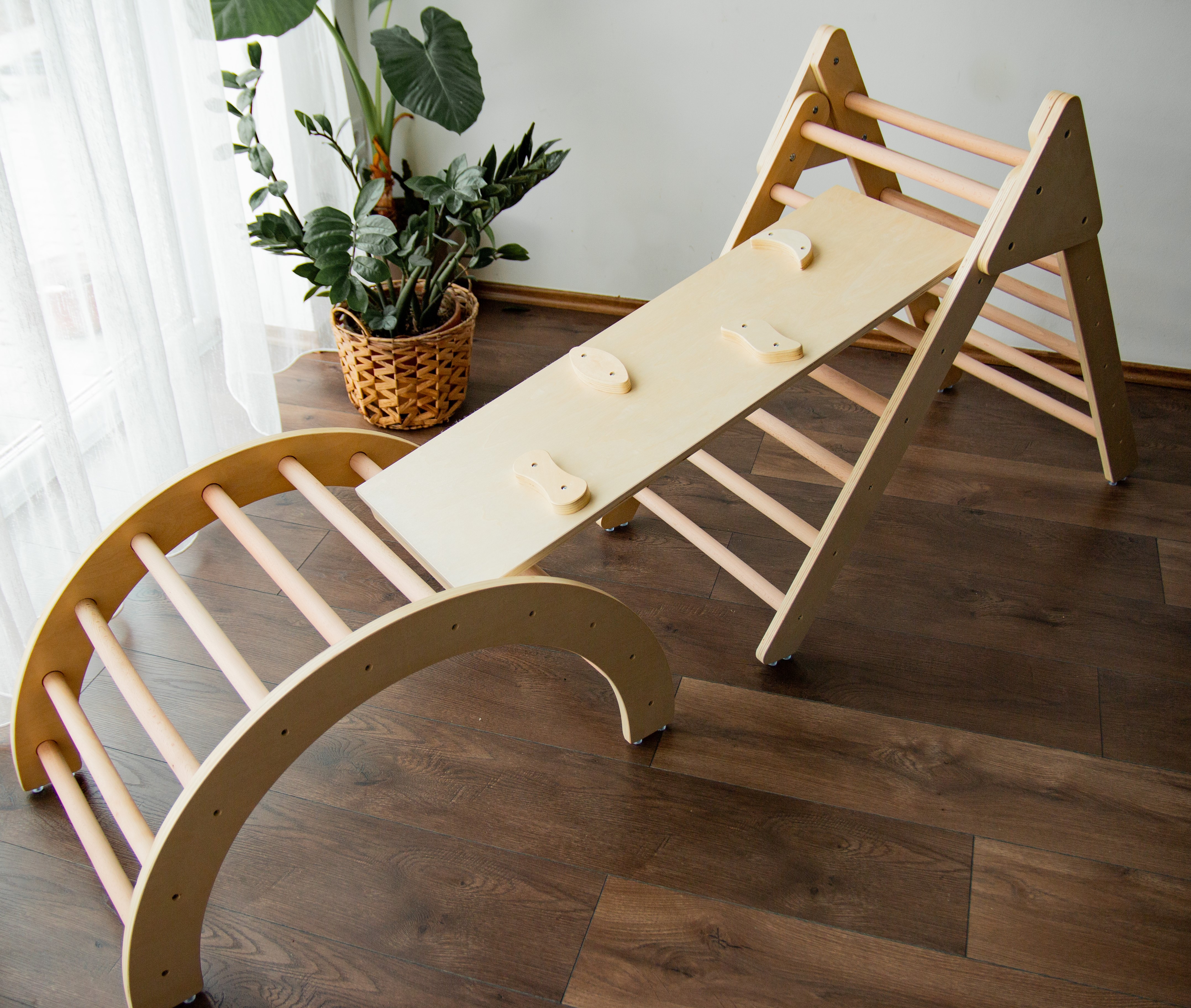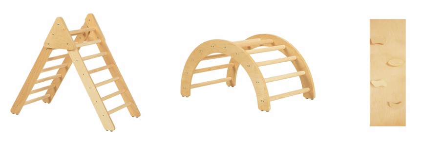3 az 1-ben mászóka szett Pikler-féle háromszöggel, mászókával és kétoldalú rámpával mozgás-és kreativitás fejlesztésre, natúr színben. A szett része: Pikler-féle háromszög, íves mászóka, kétoldalú rámpa Anyaga: rétegelt fenyőfa 24 hónapos korú gyermekek használatára CE minősítéssel ellátva!
