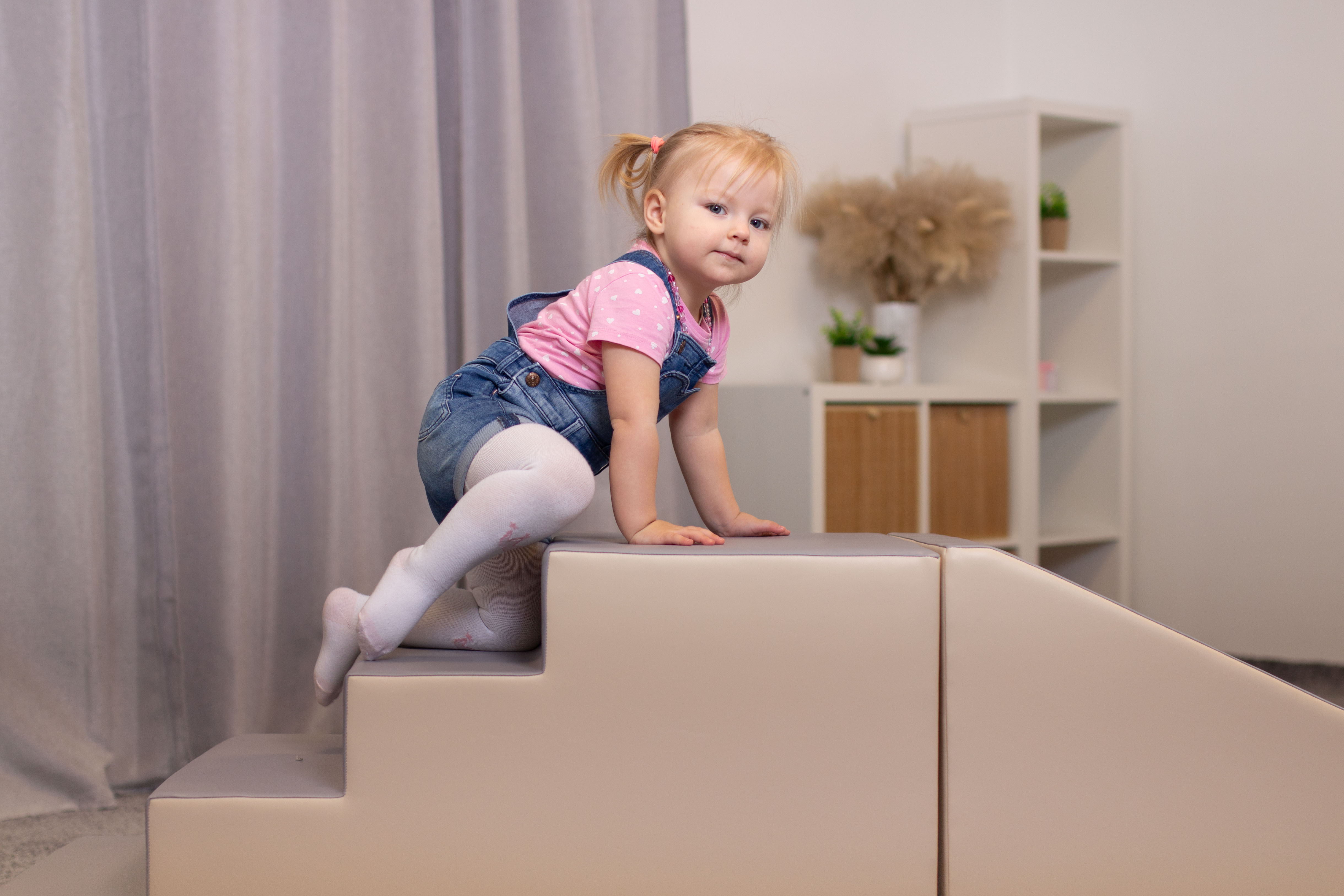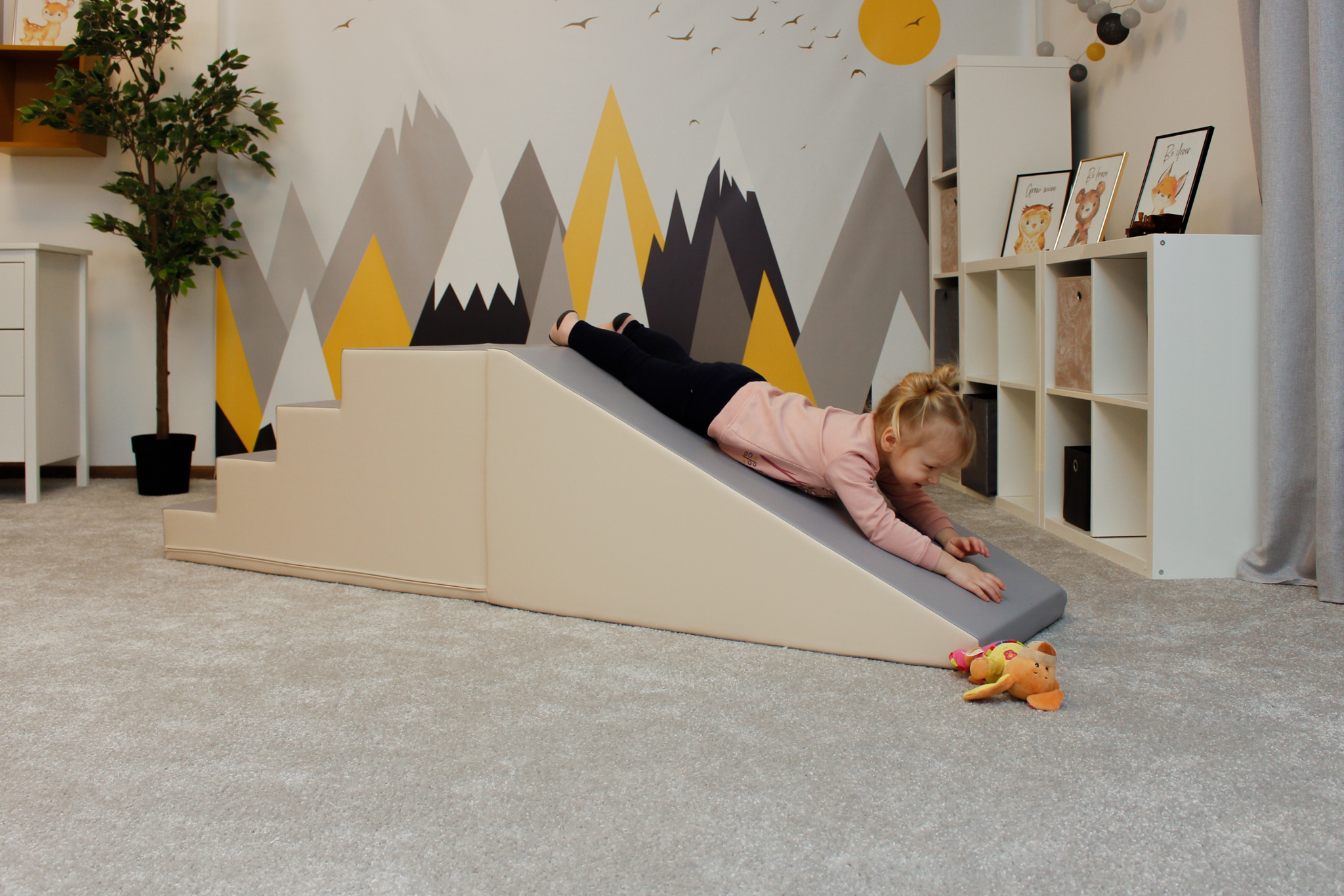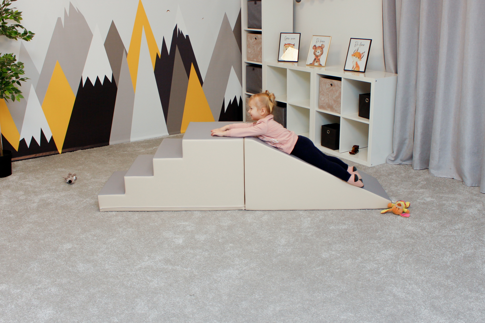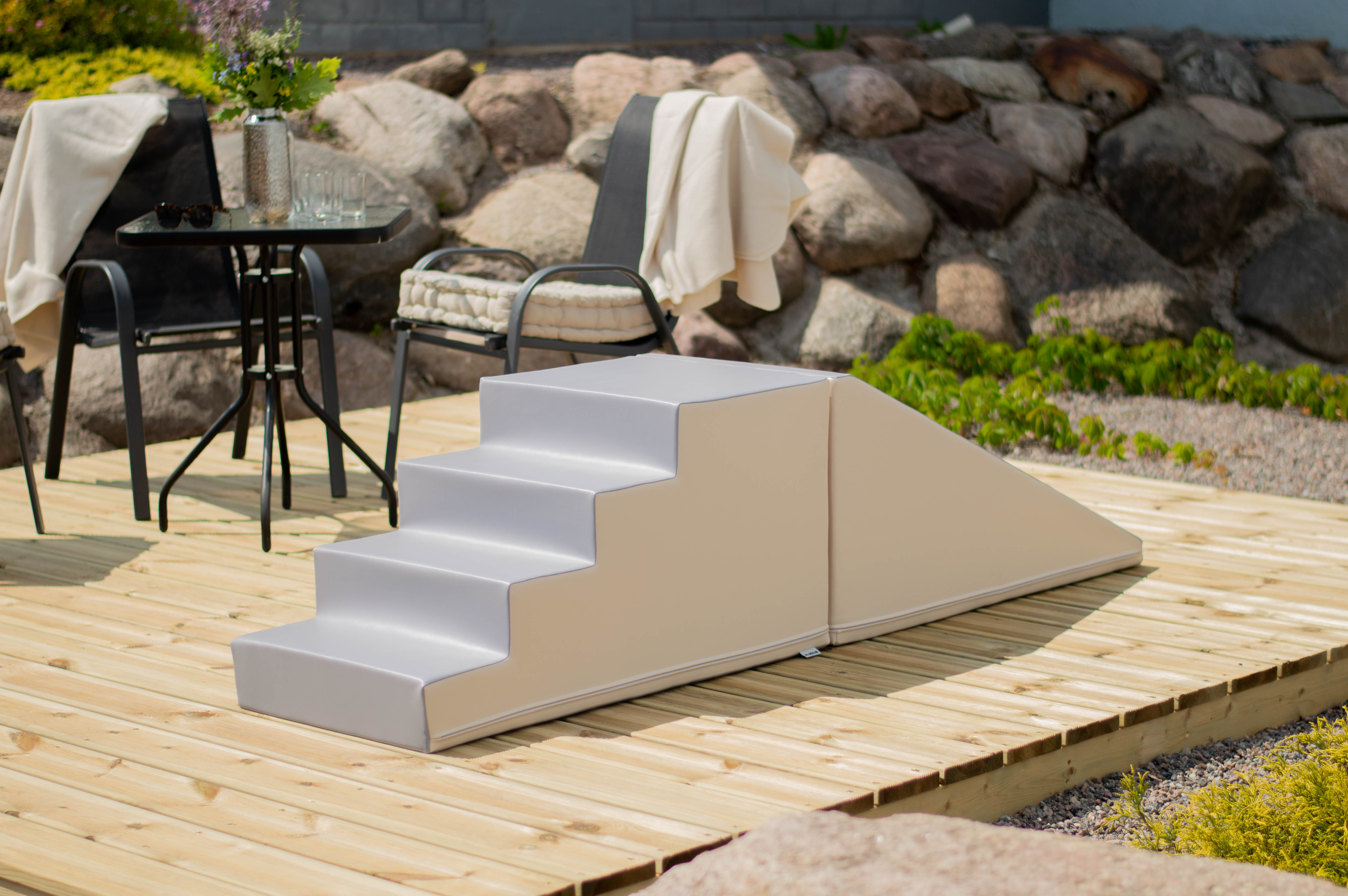 A modulkészlet lehetővé teszi, hogy a gyerekek másszanak, csússzanak, felfedezzenek. A szett a tartós használatra van tervezve, így hosszú órákig biztosít szórakozást. Tartalma: - 1 db 50x50x100 cm-es nagy lépcső - 1 db 50x50x100 cm-es nagy lejtő 100%-ban újrahasznosítható, magas minőségű habból készülnek, zárt cellás szerkezettel – puhák és rendkívül könnyűek. Az anyagot erős műbőr borítja. A formák robusztusak, kellemes tapintásúak, könnyen tisztíthatók, jól megőrzik alakjukat, és káros anyagokkal szemben teszteltek. A termék 12 hónapos korú gyermekek használatára CE minősítéssel ellátva! A termék színe esetlegesen eltérhet a képen látottól. Ajánlott korosztály: 1 – 7 év