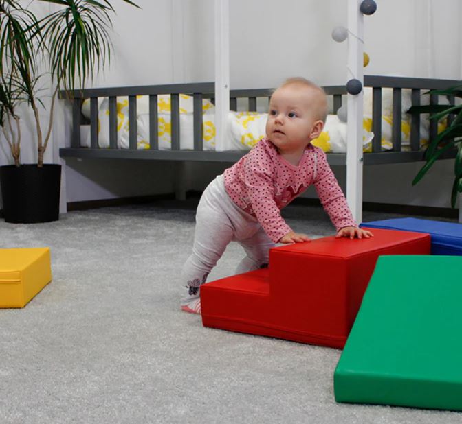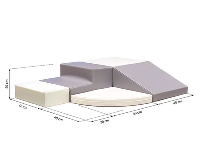 Tartalma: 5 db szivacsmodul: - 1 db kicsi téglatest - 1 db nagy téglatest- 1 db lépcső - 1 db csúszda - 1 db lapos körcikk A modulok külön-külön és egyben is használhatók, akadálypálya építésére kiválóan alkalmasak. A darabok puha habszivacsból készültek, élénk színű műbőr bevonattal. A szett citromsárga, kék, piros és zöld elemekből áll össze. Az egyes elemek mérete a gyermekek magasságához alkalmazkodva lett kialakítva, így már 9 hónapos kortól használhatók! A darabok alján vékony tépőzár csík biztosítja a stabil használatot. Az elemek praktikus kialakítása miatt könnyedén egy oszlopba rakhatók össze. A termék 9 hónapos korú gyermekek használatára CE minősítéssel ellátva! Ajánlott korosztály: 9 – 21 hónap