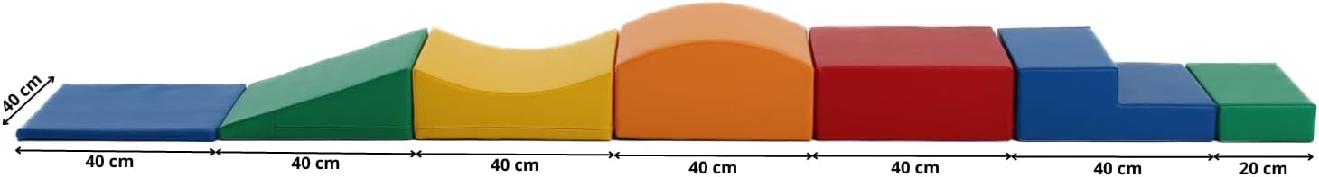 Tartalma: 7 db szivacsmodul - lapos négyzet elem - lejtő elem - homorú elem - domború elem - nagy téglatest elem - lépcső elem - keskeny téglatest elem Összeépített pálya mérete: 260x40 cm A modulok külön-külön és egyben is használhatók, akadálypálya építésére kiválóan alkalmasak. A darabok puha habszivacsból készültek, élénk színű műbőr bevonattal. Az egyes elemek mérete a gyermekek magasságához alkalmazkodva lett kialakítva, így már 9 hónapos kortól használhatók! A praktikus tárolás érdekében a modulok egymásba forgathatók, így egy 40x40 cm-es négyzetbe, toronyként tárolhatók. A termék 9 hónapos korú gyermekek használatára CE minősítéssel ellátva! Ajánlott korosztály: 9 – 15 hónap