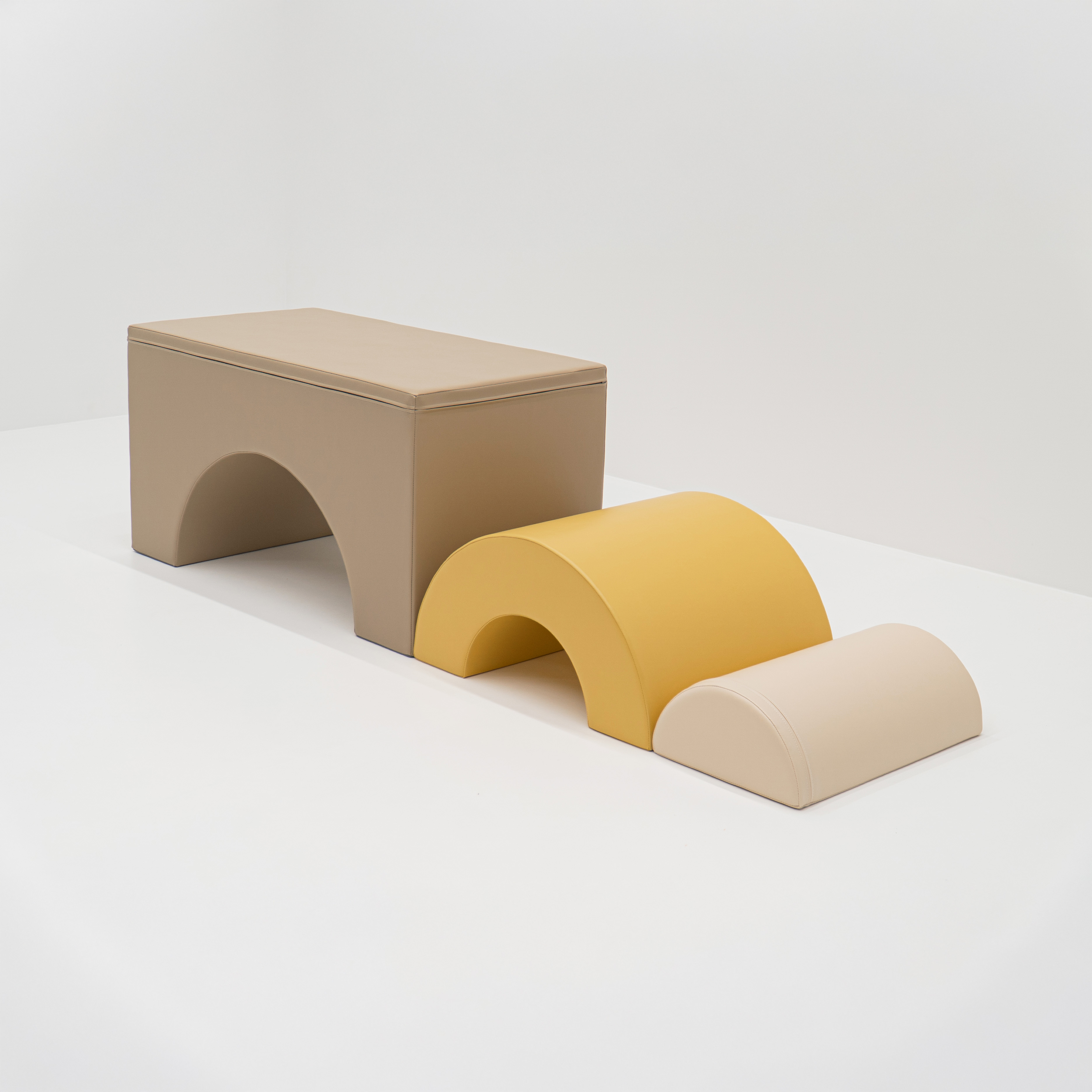 A Montessori szemléletű szivárvány híd játékos mozgásra, mászásra és felfedezésre ösztönzi a kisgyermekeket. A három különböző méretű elem alagútként, mászókaként vagy akadálypálya részeként is használható, így a gyerekek kreatívan alakíthatják saját játékterüket.