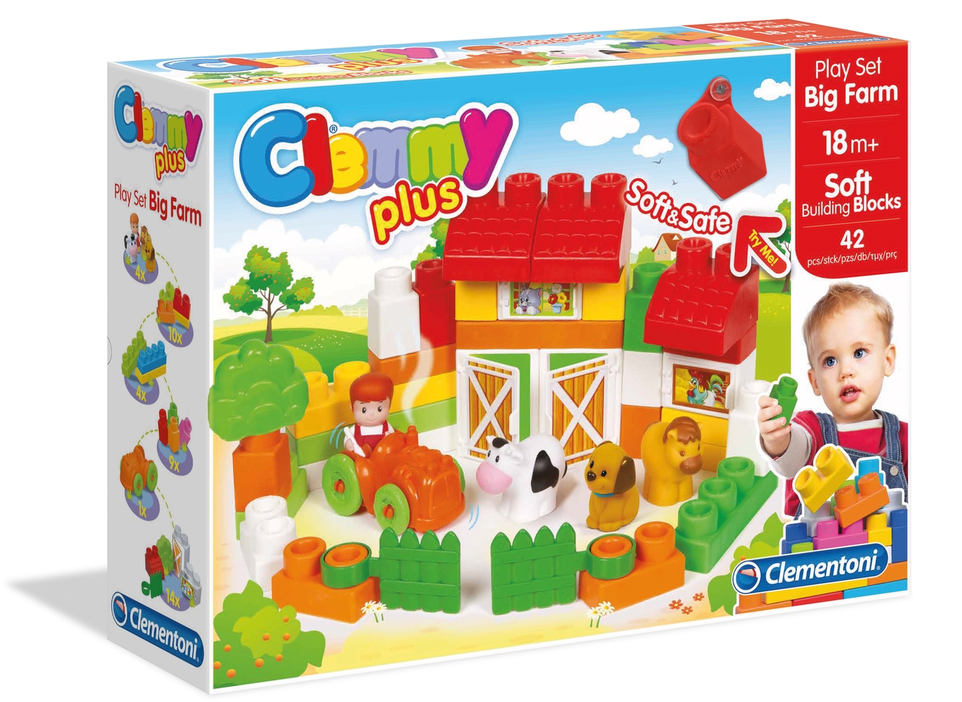 A Clemmy Plus Farm készlet puha, bababarát építőkockáival és aranyos farmfiguráival igazi vidéki élményt varázsol a legkisebbek számára.
