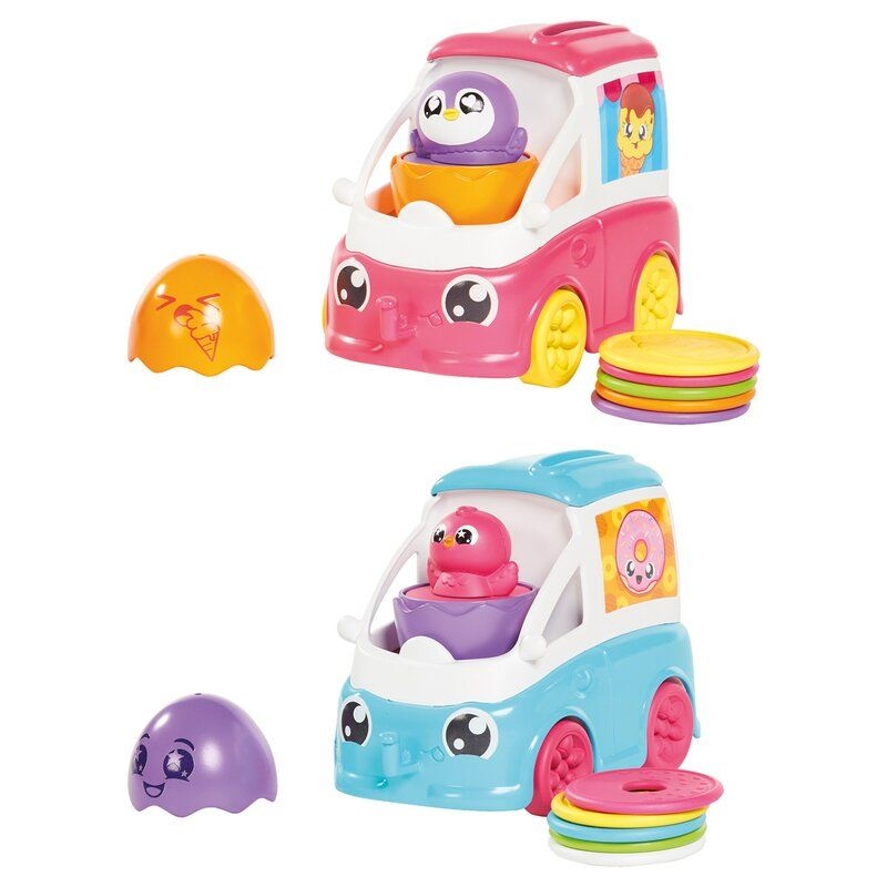 Melyik kisgyermek ne szeretné egy forró nyári napon a fagyit? A Toomies fagyis kocsija minden gyerekszobába elhozza ezt a kedvelt finomságot az év bármely napjáról is legyen szó. Egy tojásból előbújó csibe vezeti a kisautót, melynek élénk színei, kedves formái biztosan felkeltik a gyerekek figyelmét, ezzel motiválva őket a játékra. A készletben megtalálható süti korongokat, akárcsak egy perselybe, az autó tetején be lehet dobni. Ez fejleszti a szem-kéz koordinációt, hiszen nem is olyan egyszerű betalálni a kis nyílásba. A kiscsibe lenyomva csipogó hangot ad, miközben az autó hátulján visszaadja a korongot. A fagyis kocsi kompatibilis más Toomies Kukucska játékokkal, így a kicsik összekapcsolhatják kedvenceiket. A fagyis kocsi mérete: 8,5x16,5x11,5 cm 12 hónapos korú gyermekek használatára CE minősítéssel ellátva!
