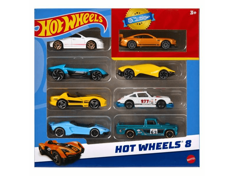 Ez a Hot Wheels 8 darabos kisautó csomag változatos stílusú és színű modelleket tartalmaz, amelyekkel a gyerekek izgalmas versenyeket rendezhetnek, ugratókat építhetnek, vagy egyszerűen csak gyűjthetik őket.