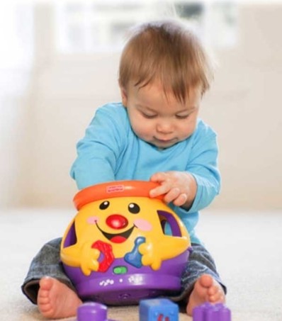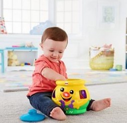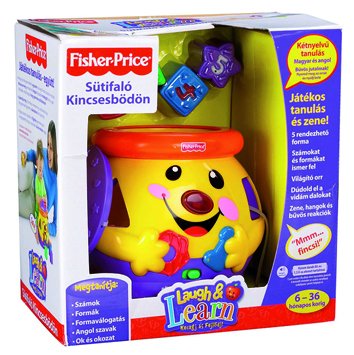 Tanulj angolul és magyarul a sütifaló bödönnel! A Fisher-Price sütifaló kincsesbödön egy nagyobb edény, amibe különböző színű formákat tudsz bedugni. A kincses bödön minden egyes süti bejutását vidám angol és magyar mondatokkal jutalmazza, miközben az orra is világít. A Fisher-Price sütifaló kincses bödön zenélő és számoló módban is használható, ha meguntad a játékot, csak tedd a belsejébe a sütiket, és tedd a tetejére a fedelét! A játék fejleszti a mozgáskoordinációt és az érzékelést, megtanítja a számokat, vidám dalokkal szórakoztatja a babát.