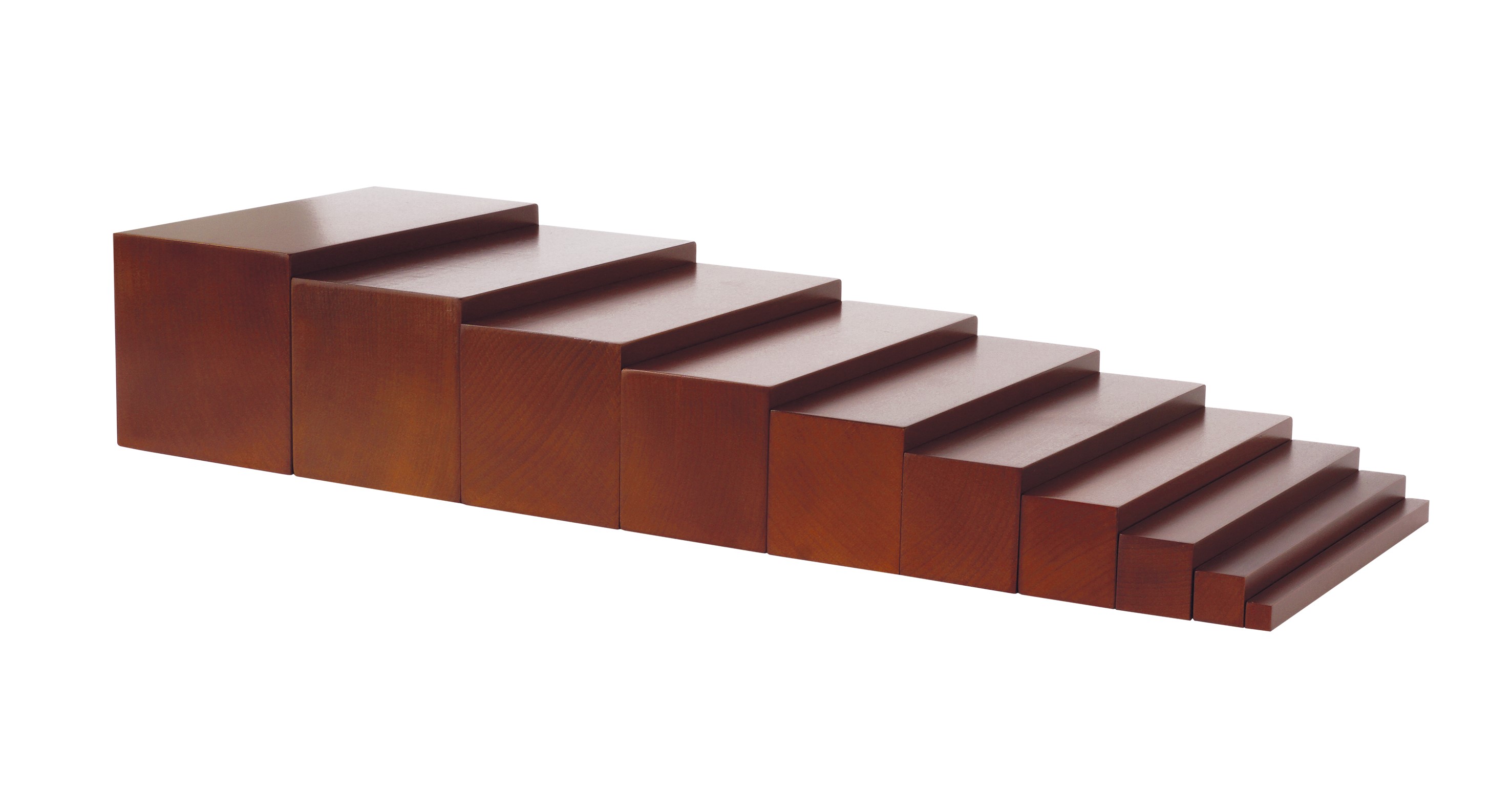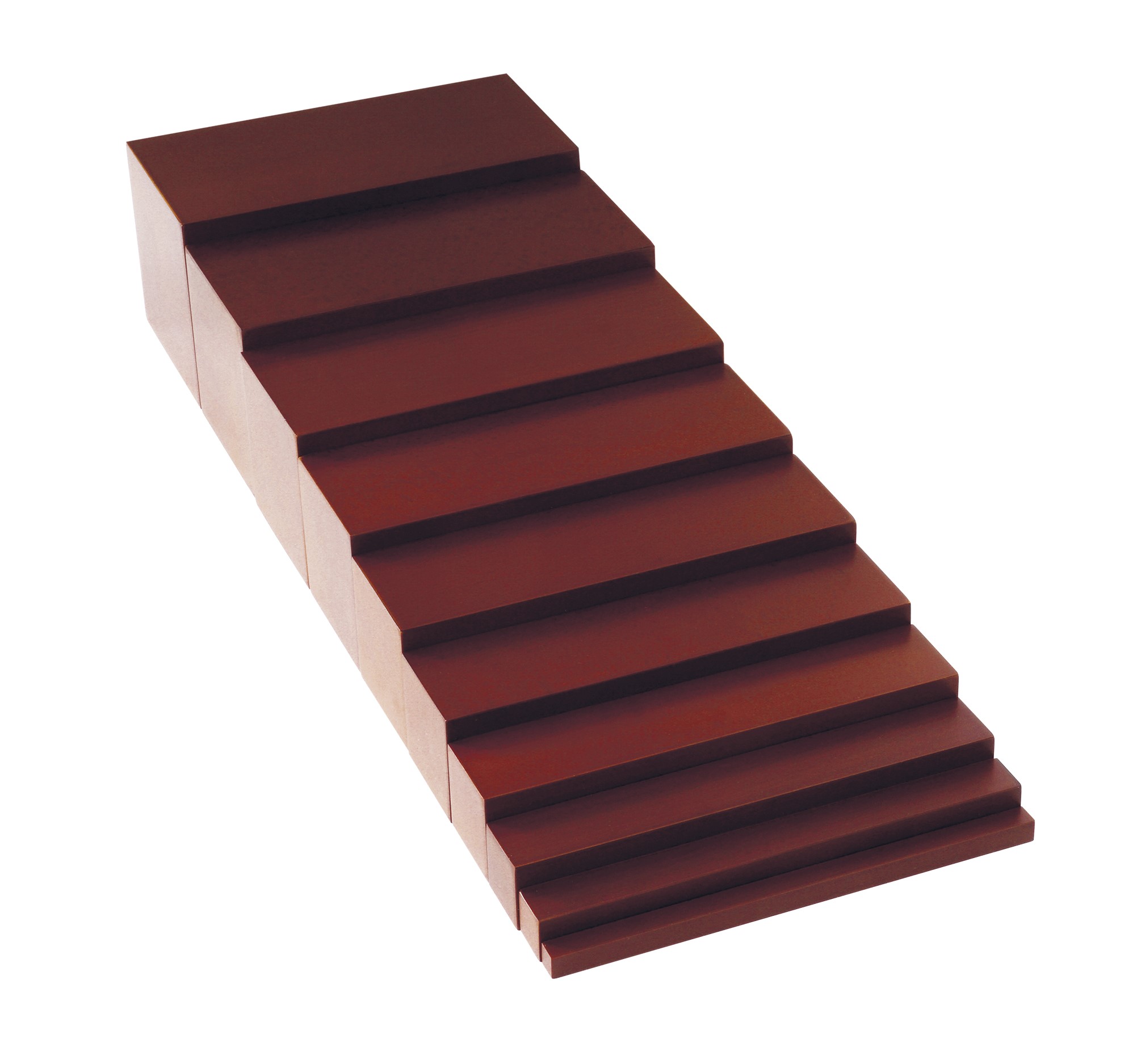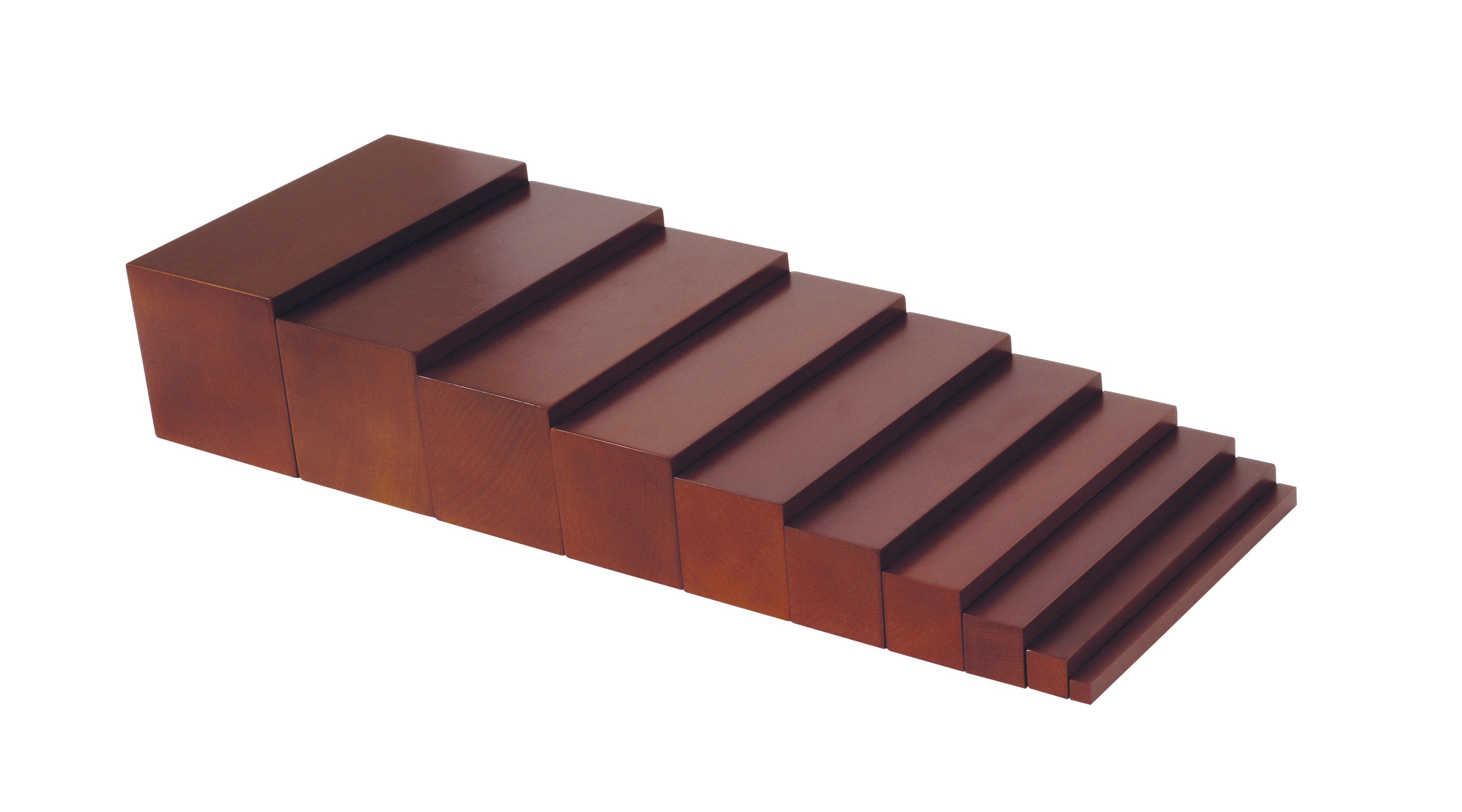 10 fokozatú lépcső, amely segítségével a gyerekek játékosan tanulhatják meg a vastag, vékony fogalmát, illetve a különböző méretarányokat. Méret: 1x1x20 cm-től 10x10x20 cm-ig. Anyaga: bükkfa