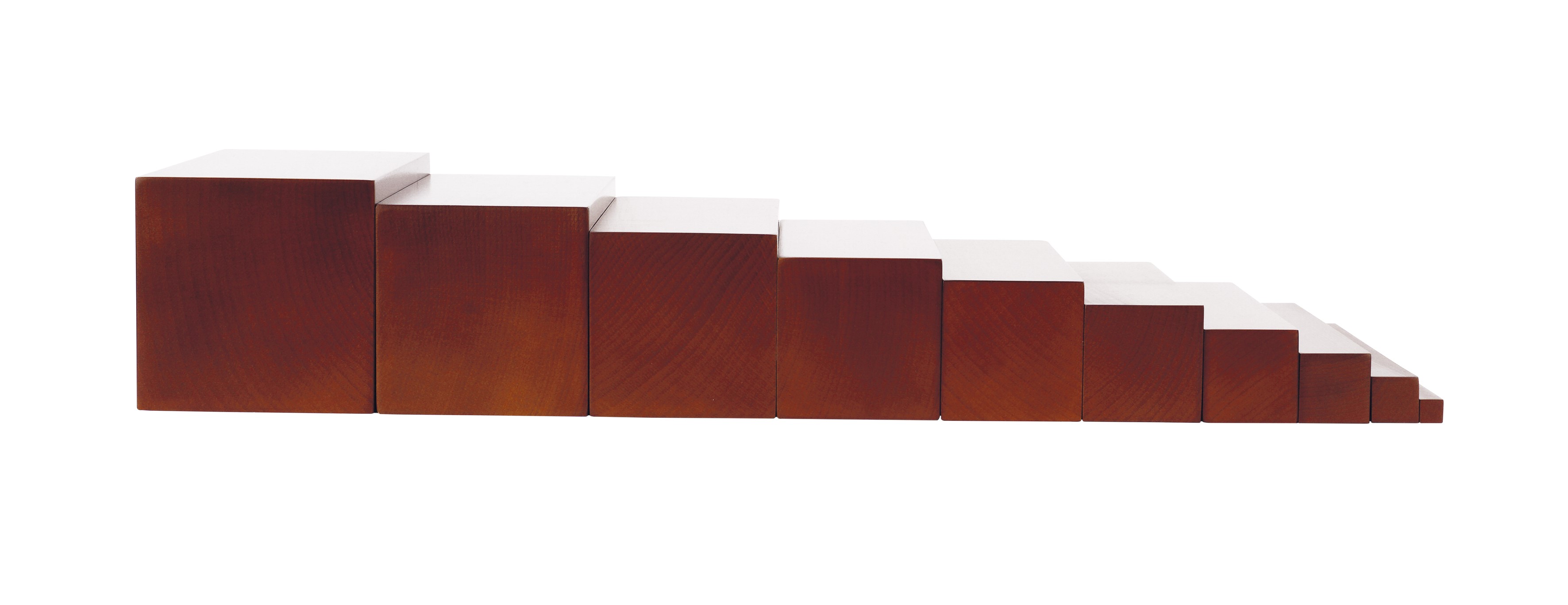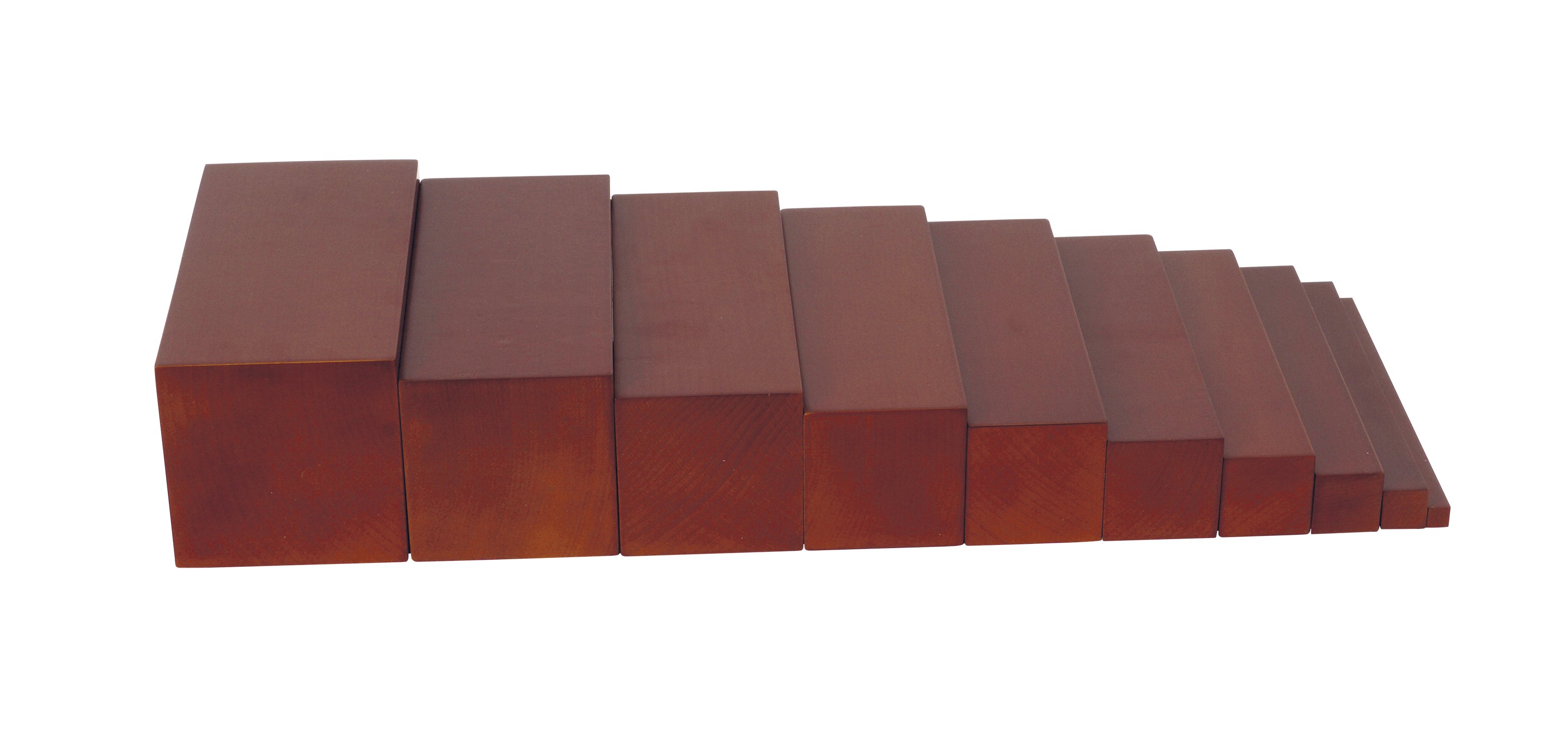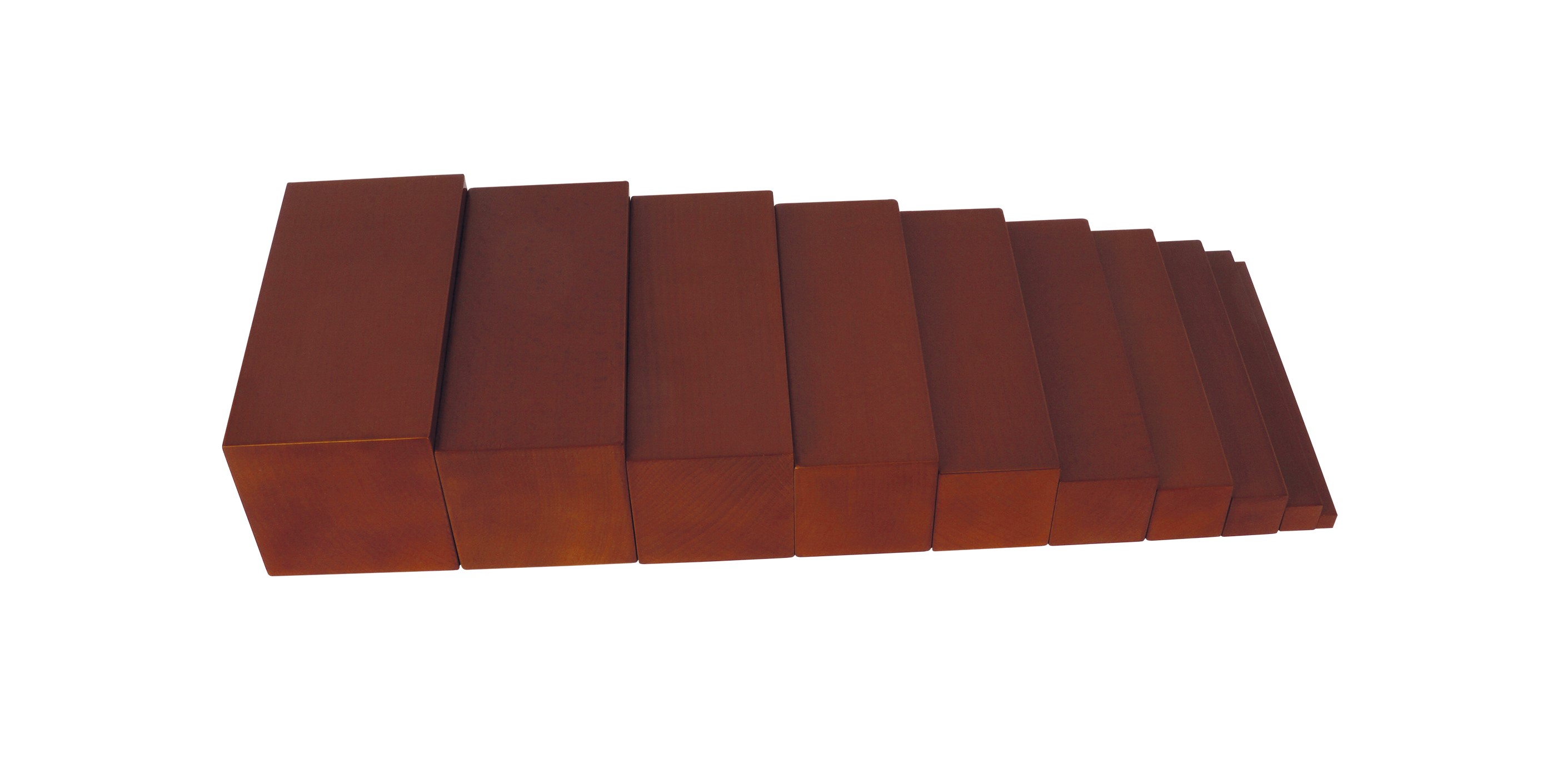 10 fokozatú lépcső, amely segítségével a gyerekek játékosan tanulhatják meg a vastag, vékony fogalmát, illetve a különböző méretarányokat. Méret: 1x1x20 cm-től 10x10x20 cm-ig. Anyaga: bükkfa