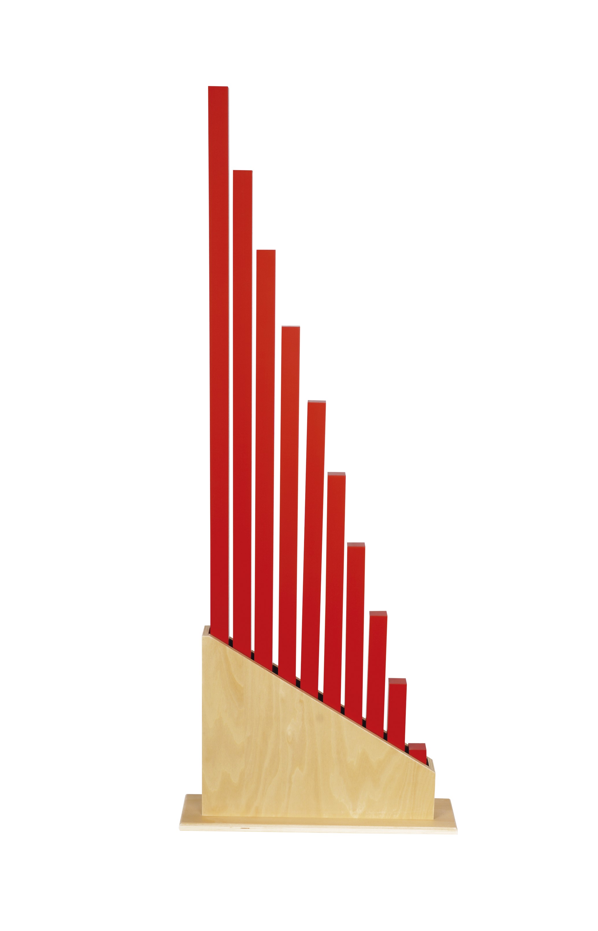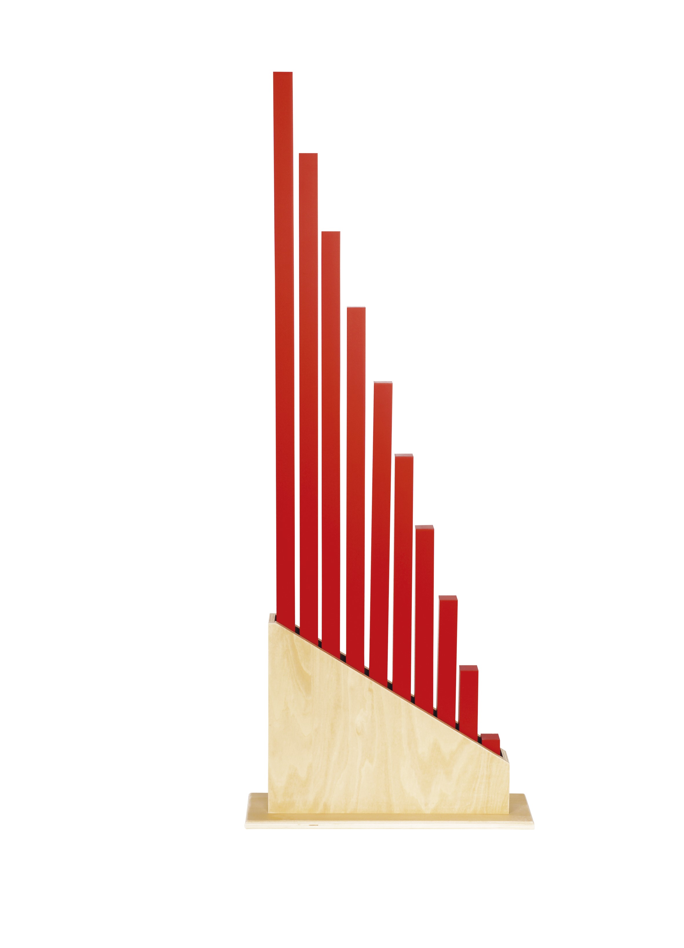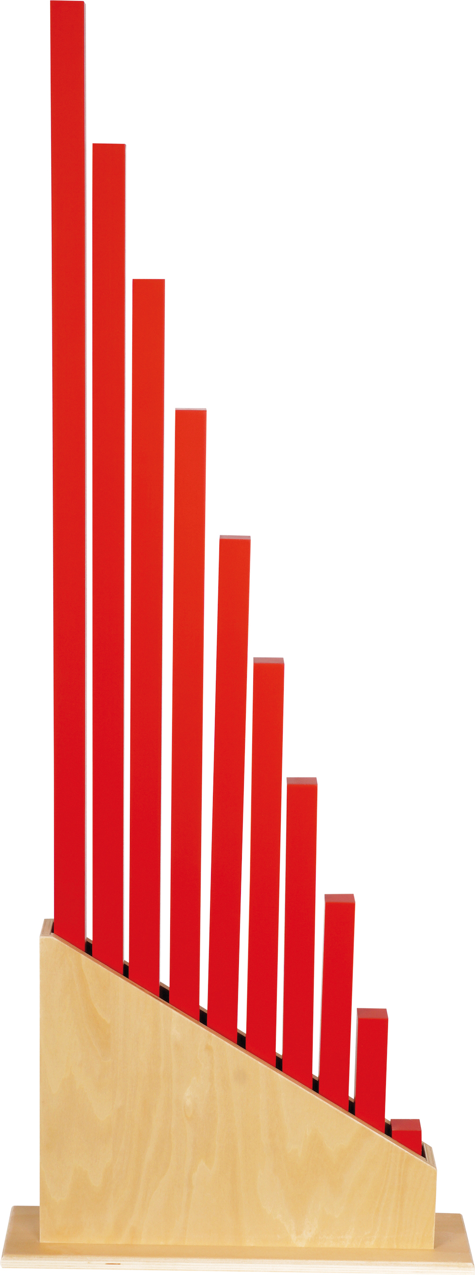 A Montessori Piros rudak praktikus kiegészítője ez az állvány. Különösen hasznos a rudak hosszúságának vizuális és tapintásos összehasonlításakor. Segít a rudak egyszerű tárolásában, miközben lehetővé teszi, hogy a gyermekek a rudakat gyorsan sorba rendezzék, illetve használják a számolási és matematikai műveletek során. Az állvány ideális segédeszköz a matematika tanulásához.