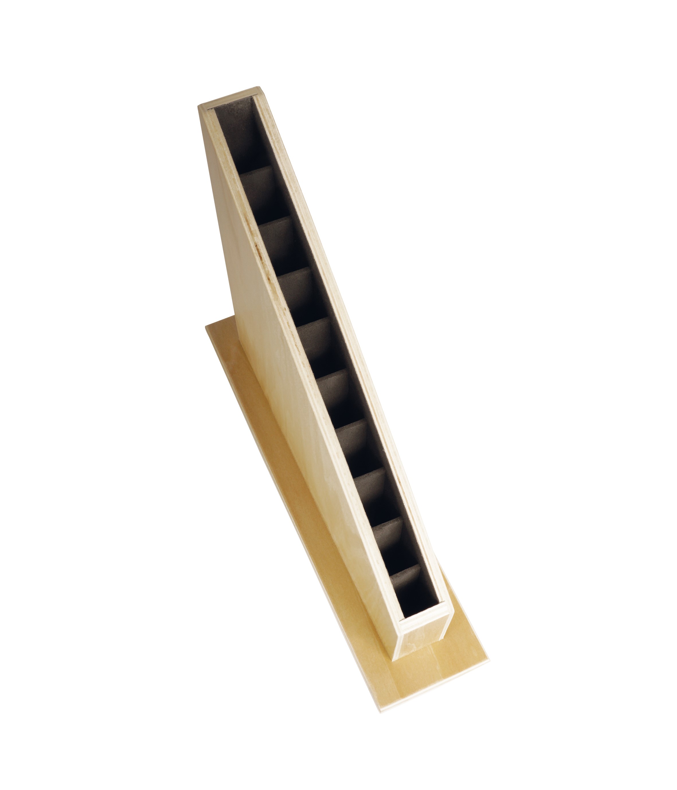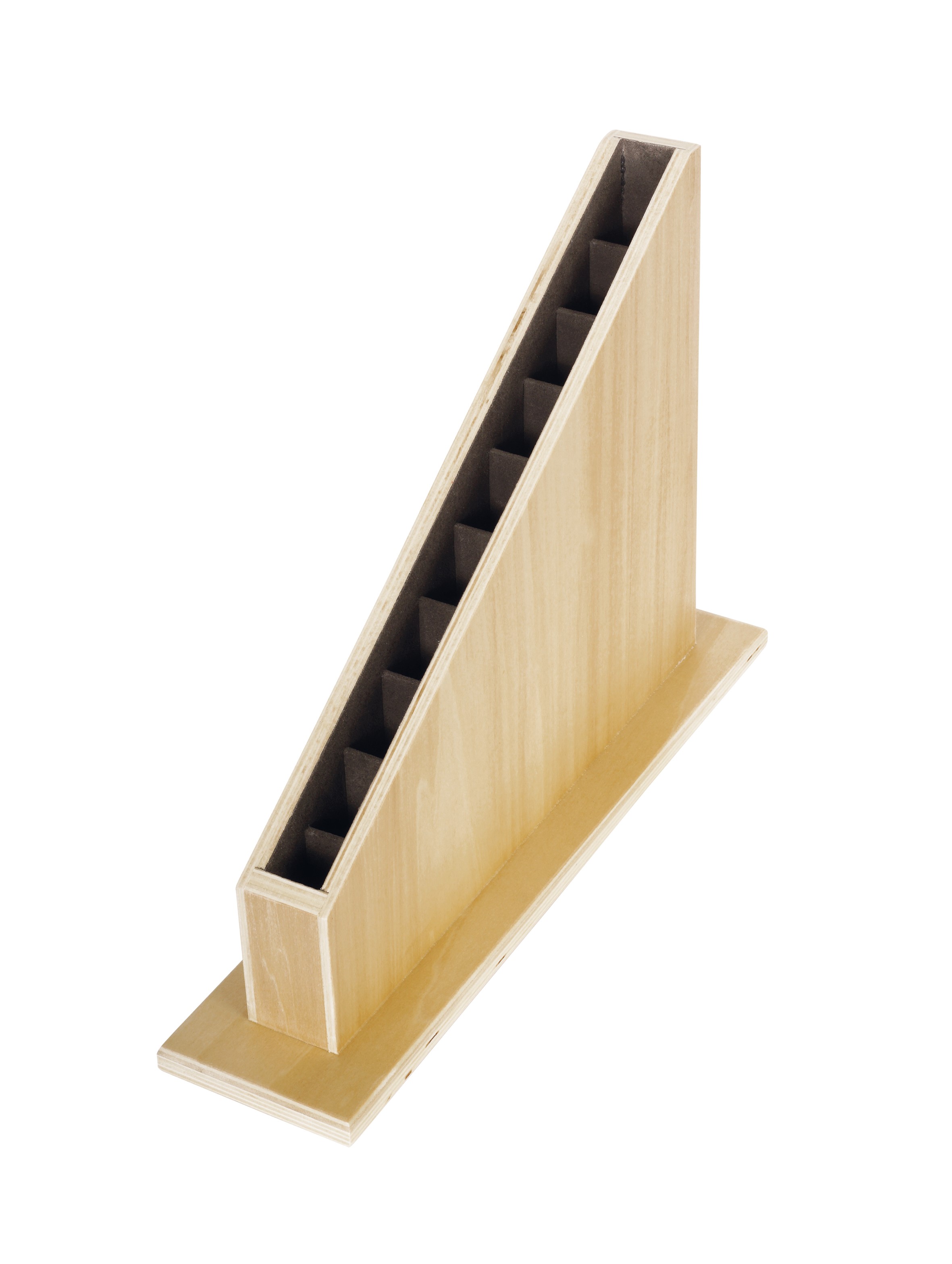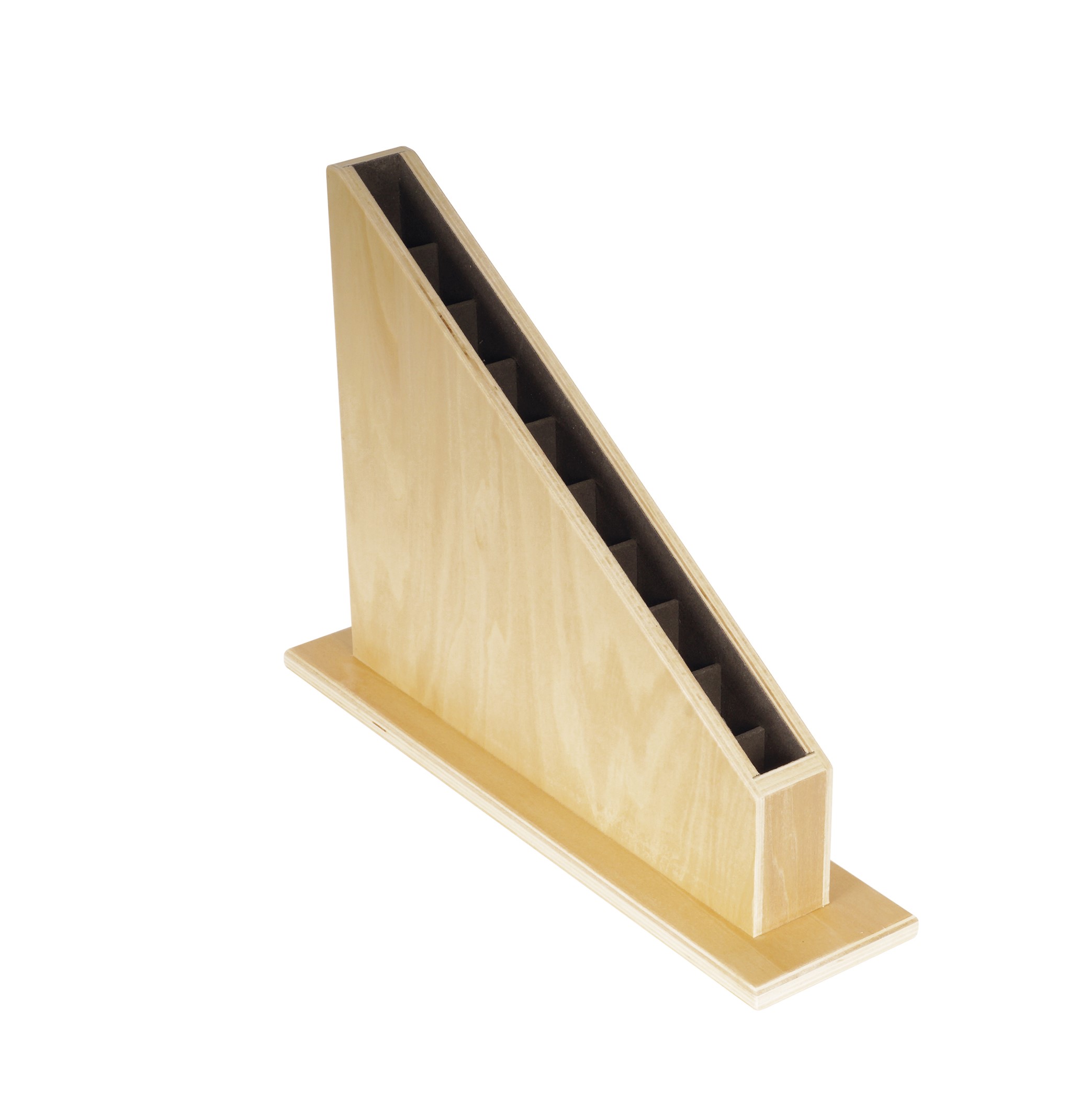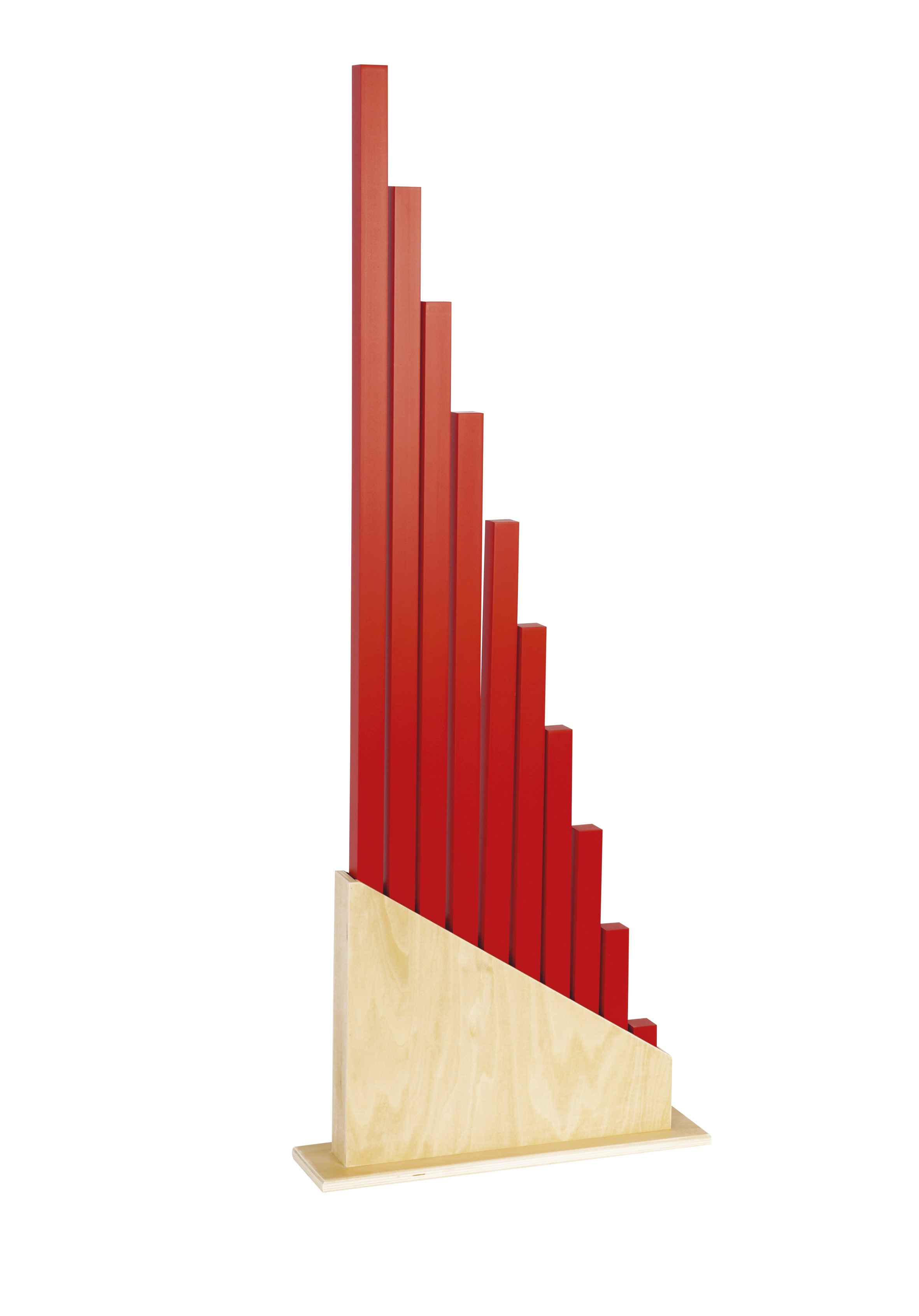 A Montessori Piros rudak praktikus kiegészítője ez az állvány. Különösen hasznos a rudak hosszúságának vizuális és tapintásos összehasonlításakor. Segít a rudak egyszerű tárolásában, miközben lehetővé teszi, hogy a gyermekek a rudakat gyorsan sorba rendezzék, illetve használják a számolási és matematikai műveletek során. Az állvány ideális segédeszköz a matematika tanulásához.