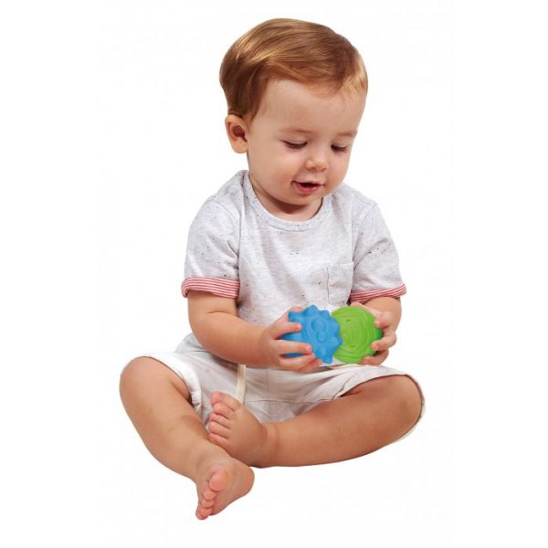 Kiváló készségfejlesztő játék, a legkisebbek számára. A készletben található 6 db színes kis puha labda mindegyike más-más textúrával rendelkezik, így kiválóan fejlesztik a kisgyermekek idegrendszerét és tapintását már fél éves kortól. Felületüknek és méretüknek köszönhetően a picik könnyen kézbe is tudják venni. Vidám és élénk színeik pedig hamar felkeltik a gyermekek érdeklődésék.