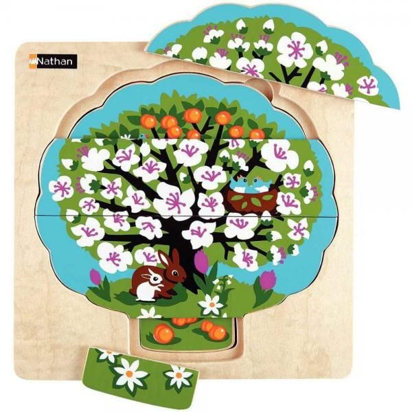 A háromszintes fa kirakó játék 9 darab illeszkedő elemből áll, amelyek a legkisebbtől a legnagyobbig helyezhetők egymásra.