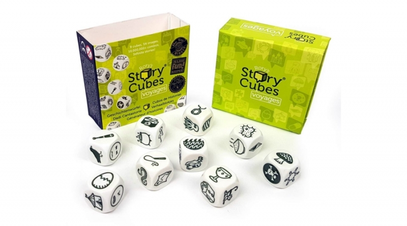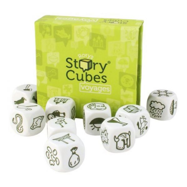 A zöld sztorikocka egy 9 db-os alapkészlet föld körüli utazás témakörben.