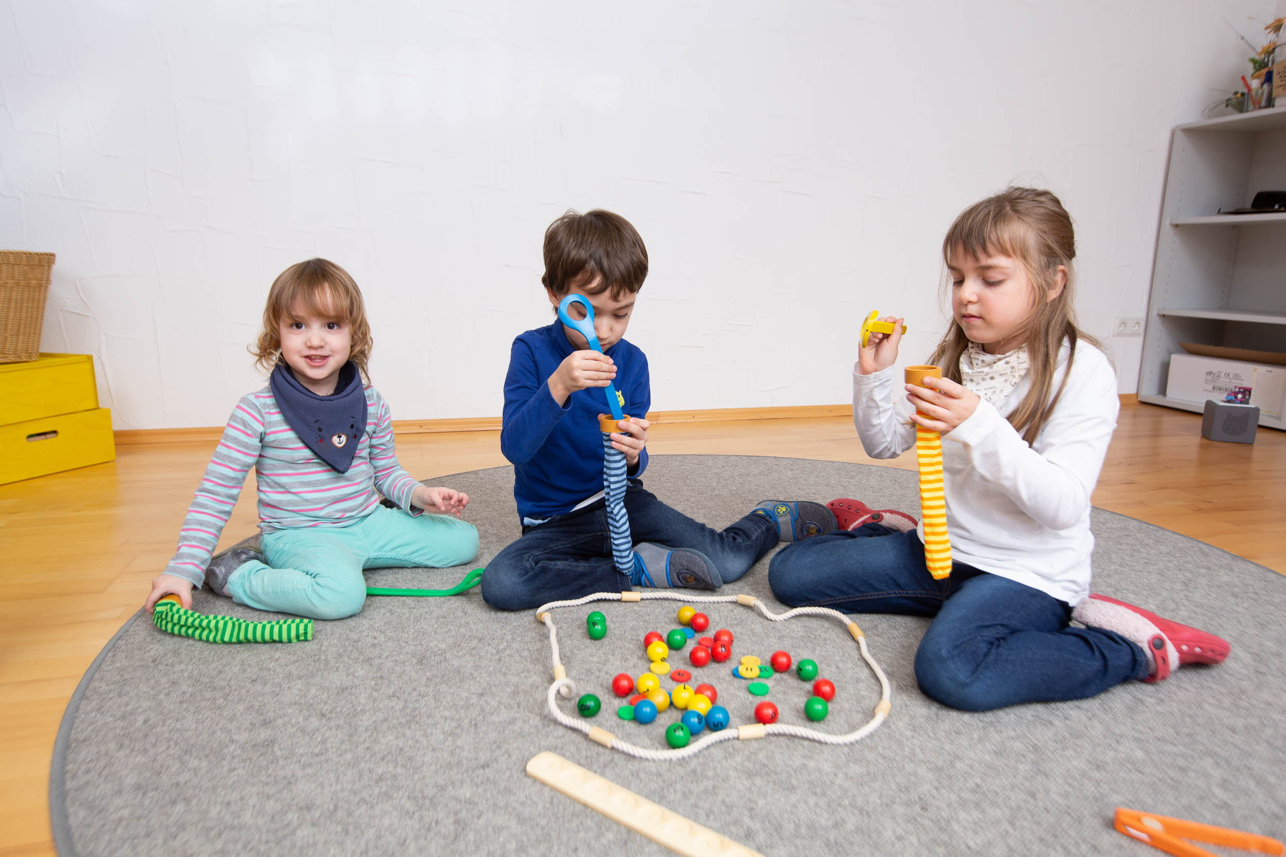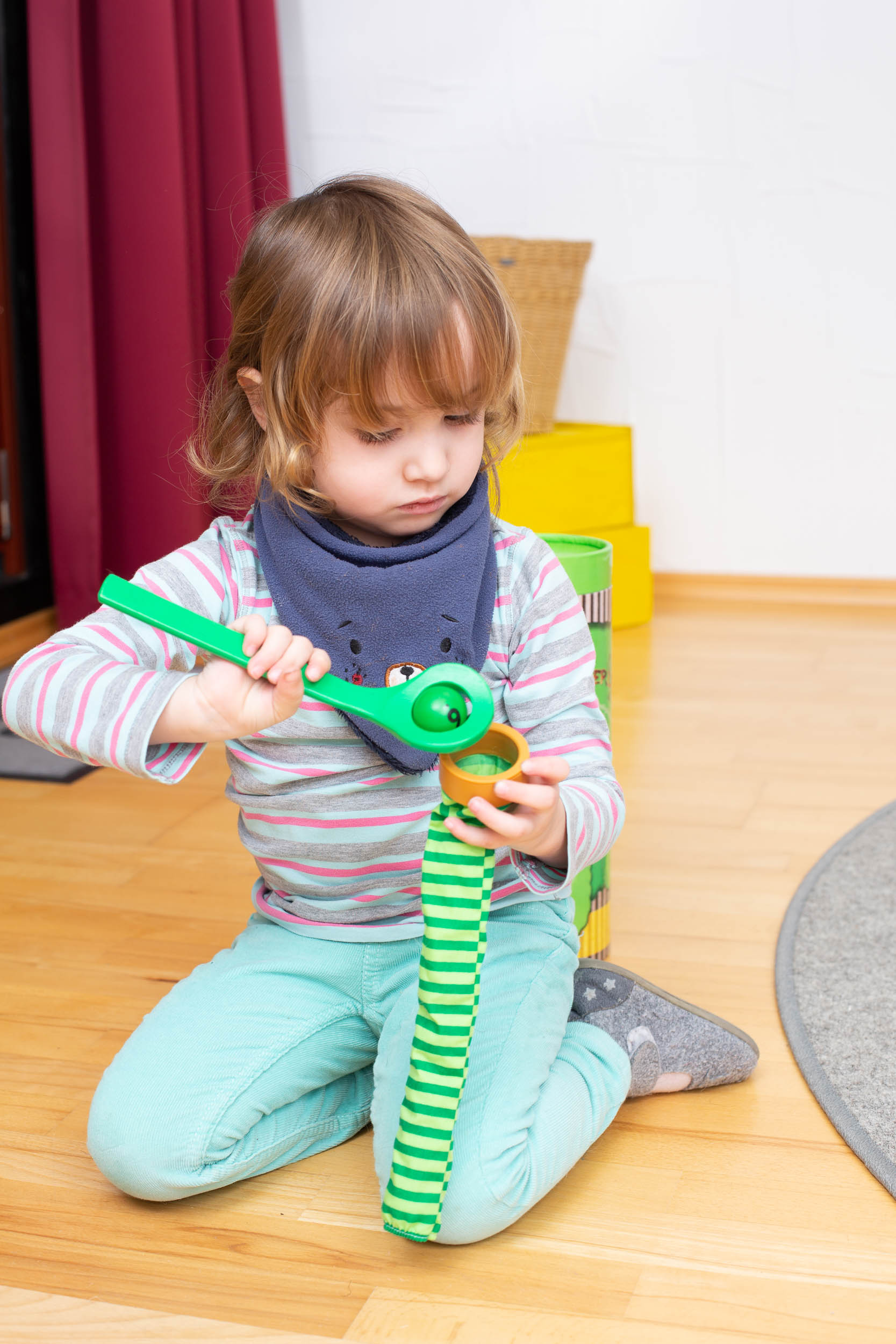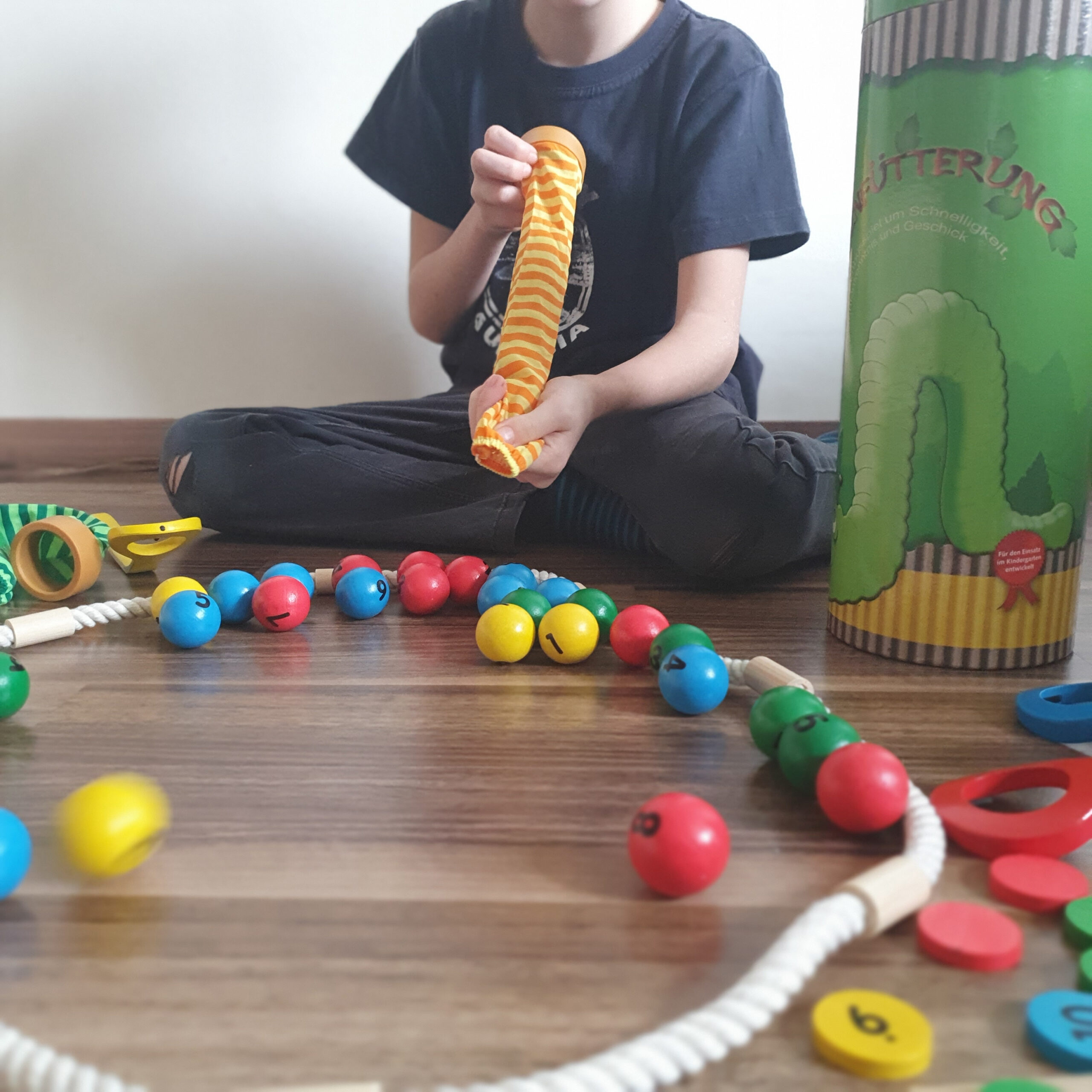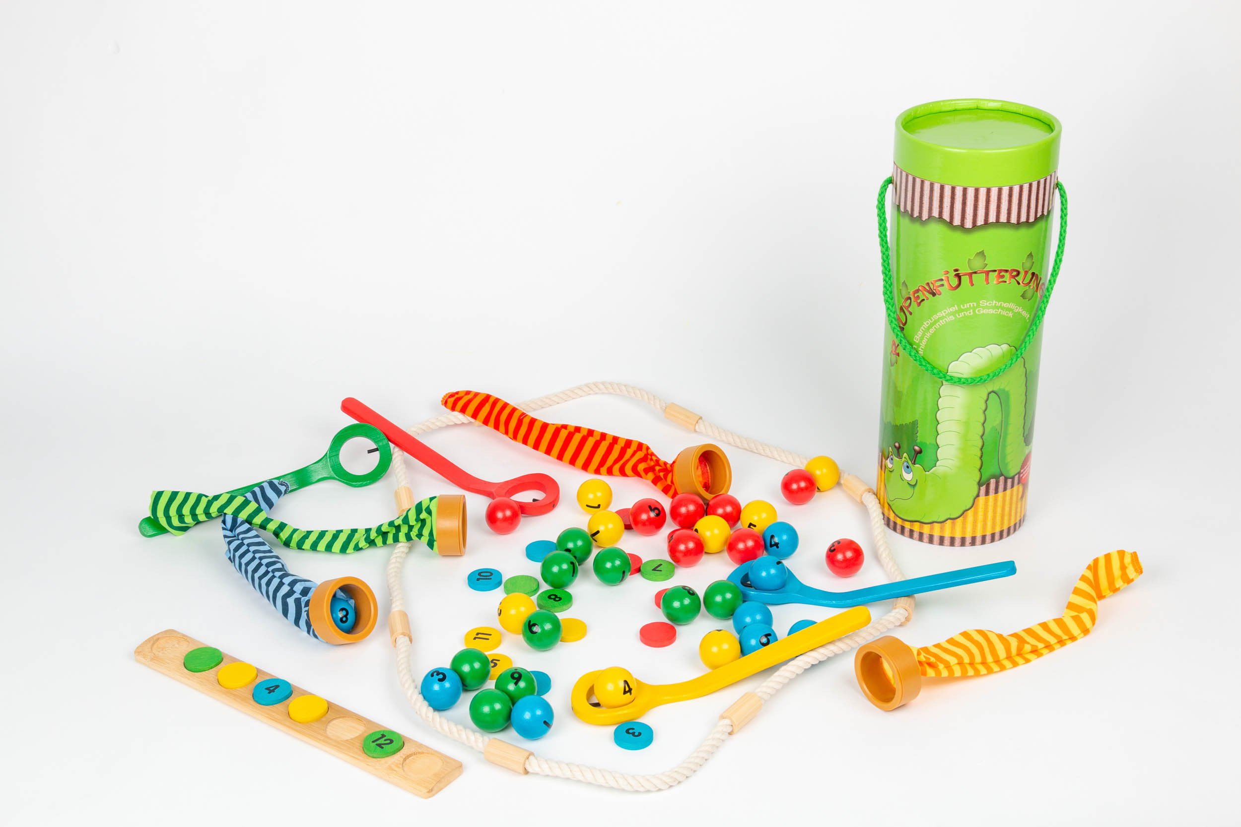 A játék során a gyerekek színes golyókat gyűjtenek össze, majd „megetetik” vele a saját színű hernyójukat.