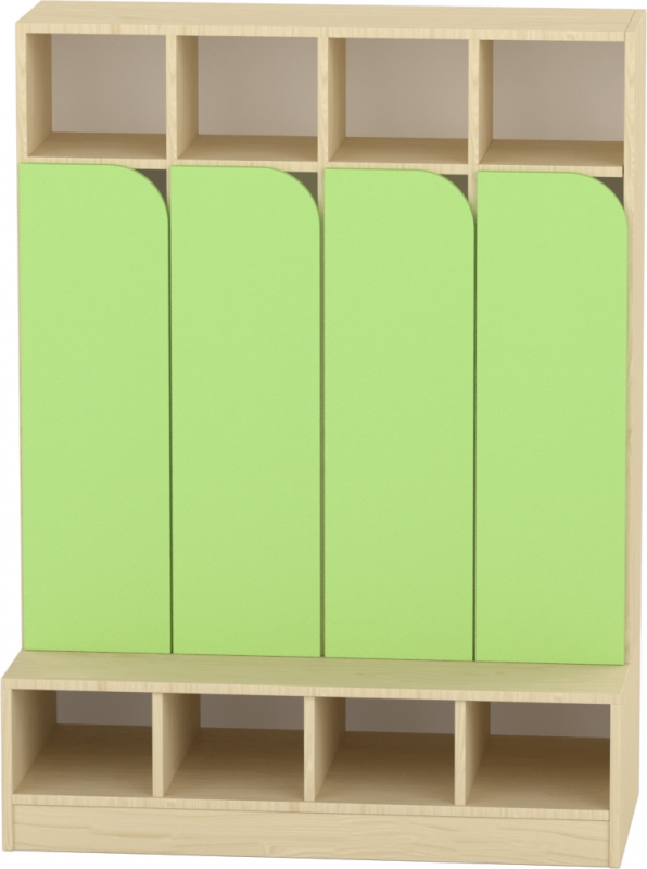 Gyermeköltöző 4 fős, nyitott, polcos cipőtárolós – juhar