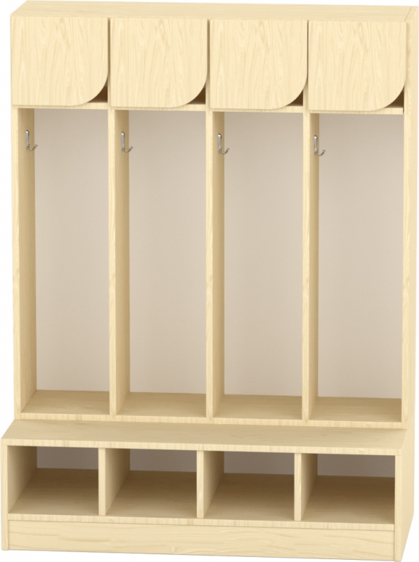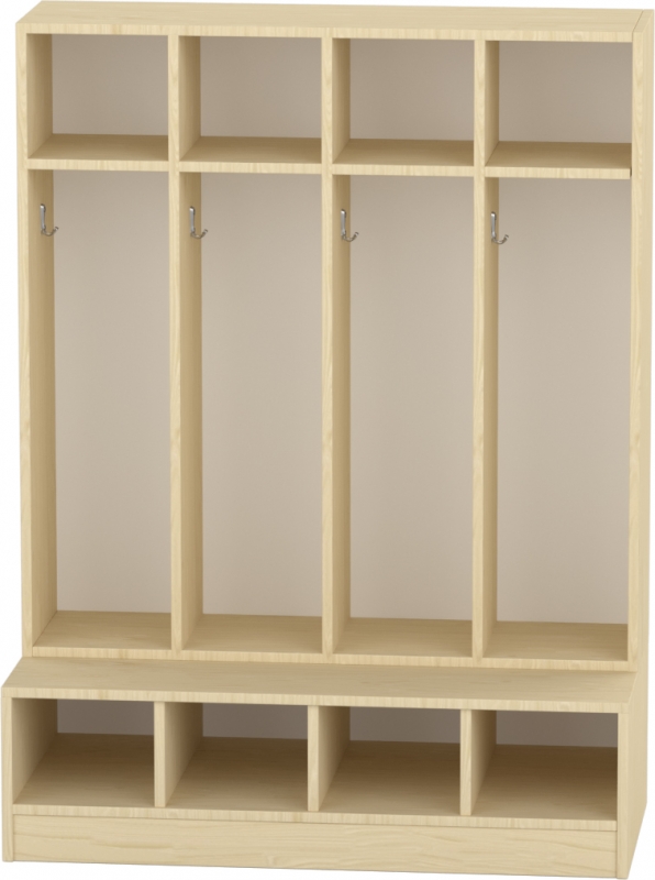 Komfort gyermeköltöző 4 fős, nyitott, polcos cipőtárolós - juhar